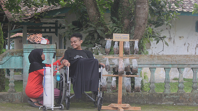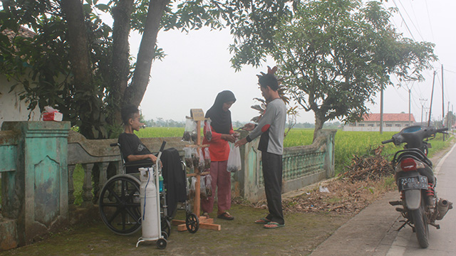 Bu Atikah (48) dengan tegar walau porak terus memperjuangkan kesembuhan putri bungsunya itu. Sehari-hari, beliau berjualan belut dan terkadang membawa Imas bersamanya karena tak ada sanak yang menemani di rumah. Tak jauh jarak yang dapat Bu Atikah tempuh untuk berjualan karena terkadang harus membawa anaknya yang duduk di kursi roda. Dengan sabar, Bu Atikah menempuh 3-4 kilometer untuk memperjuangkan pendapatan paling besar 20ribu rupiah.