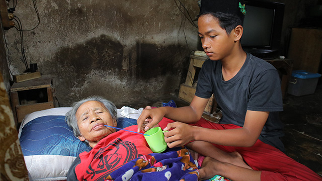 Dulu, neneklah yang mengurus dan menyemangatinya. Tapi kini peran itu berbalik. Dengan tangan kecilnya, Waryono merawat sang nenek, menyuapi, membersihkan, bahkan mengobati sebisa mungkin.