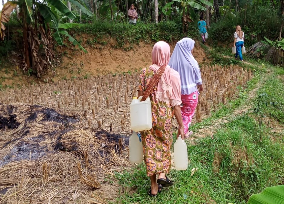 Dampak kekeringan juga dirasakan warga lainnya sehingga warga hidup tanpa air bersih. Seperti puluhan Nenek di Cilograng, Lebak harus berjalan 2 km untuk mengambil air.