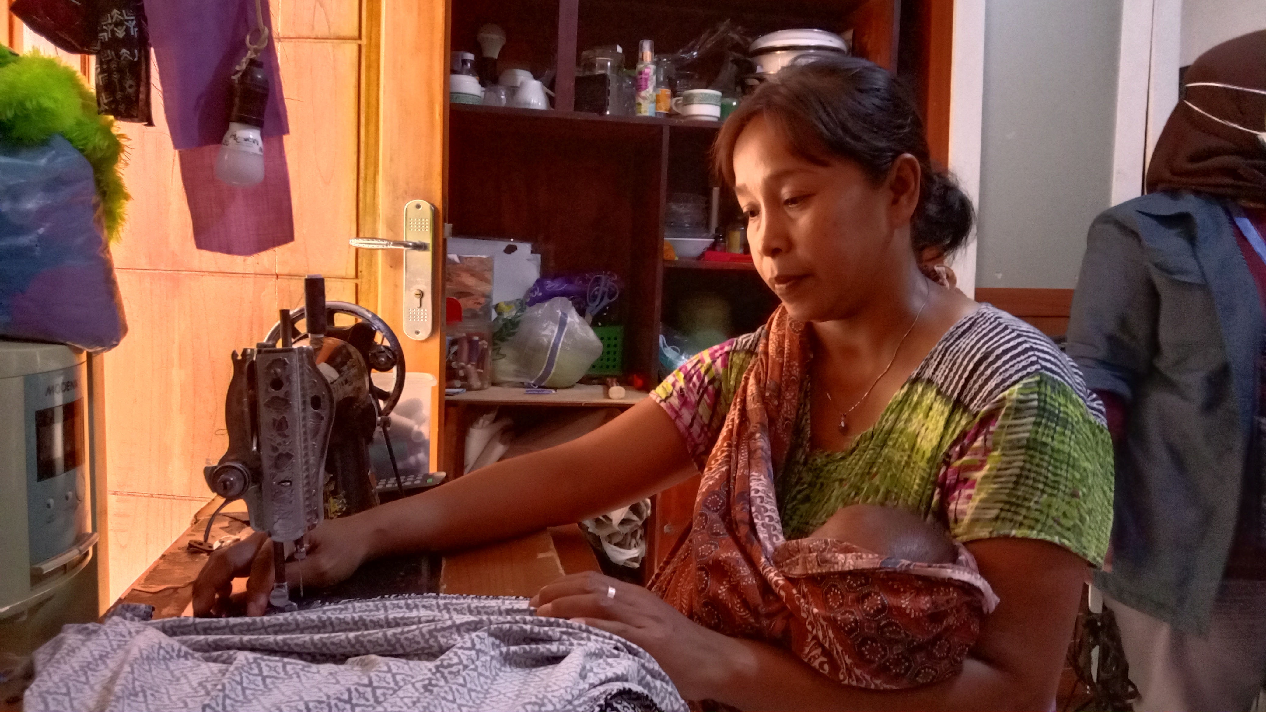 Lelah Tak Berkesudahan : Bu Cucu Menjahit Sambil Gendong Bayi