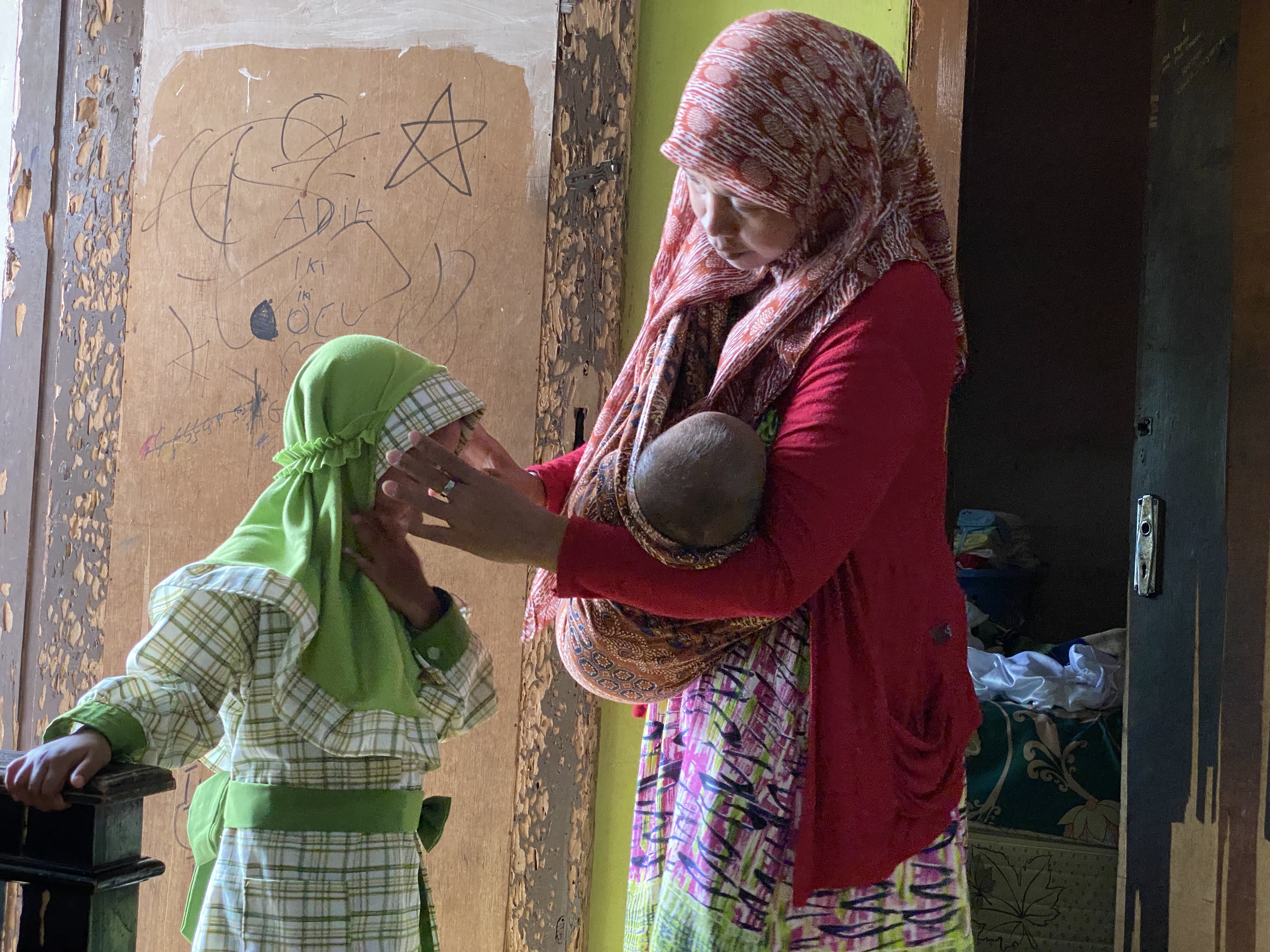 Kadang, Bu Cucu menjahit sambil menggendong bayi mungilnya. Ia tampak bersedih dan kelelahan. Bu Cucu mau untuk bekerja lebih banyak agar penghasilannya bertambah, tapi ia tak bisa meninggalkan kelima anaknya. Ia tak sempat. Jahitan yang sepi orderan juga seringkali membuatnya sedih ketika menatap anak-anaknya.