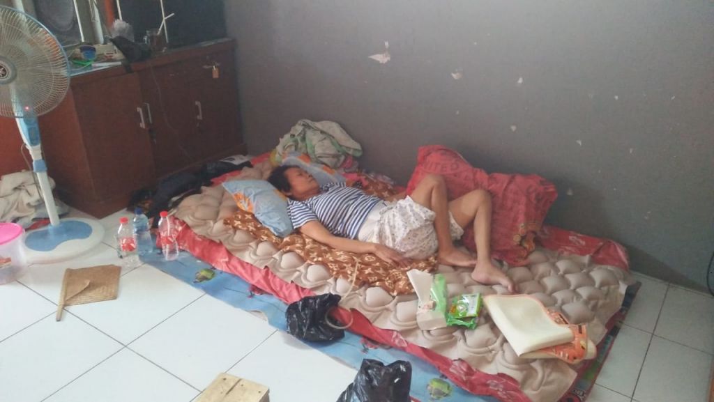Ibu Jum harus segera diobati, beliau harus kontrol ke Rumah Sakit. Selang di kepalanya harus sering di cek dan diganti, juga kateter yang terpasang harus sering diperhatikan. Belum lagi luka dekubitus (akibat terlalu lama berbaring menjadi luka) yang harus dirawat sehingga tidak terjadi infeksi.