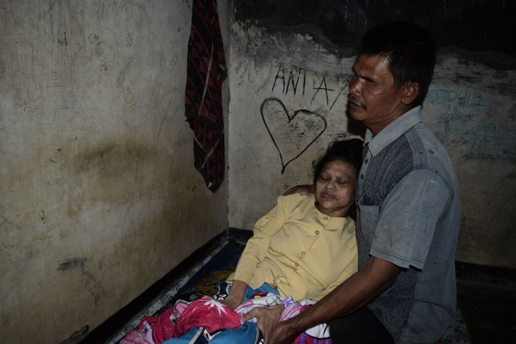 Istri Pak Dede, Eras (48 tahun), sudah belasan tahun mengalami kelumpuhan dan hanya terbaring di kamarnya yang sempit dan sederhana. Karena keterbatasan ekonomi, Pak Dede tidak dapat melanjutkan proses pengobatan istri tercintanya tersebut.