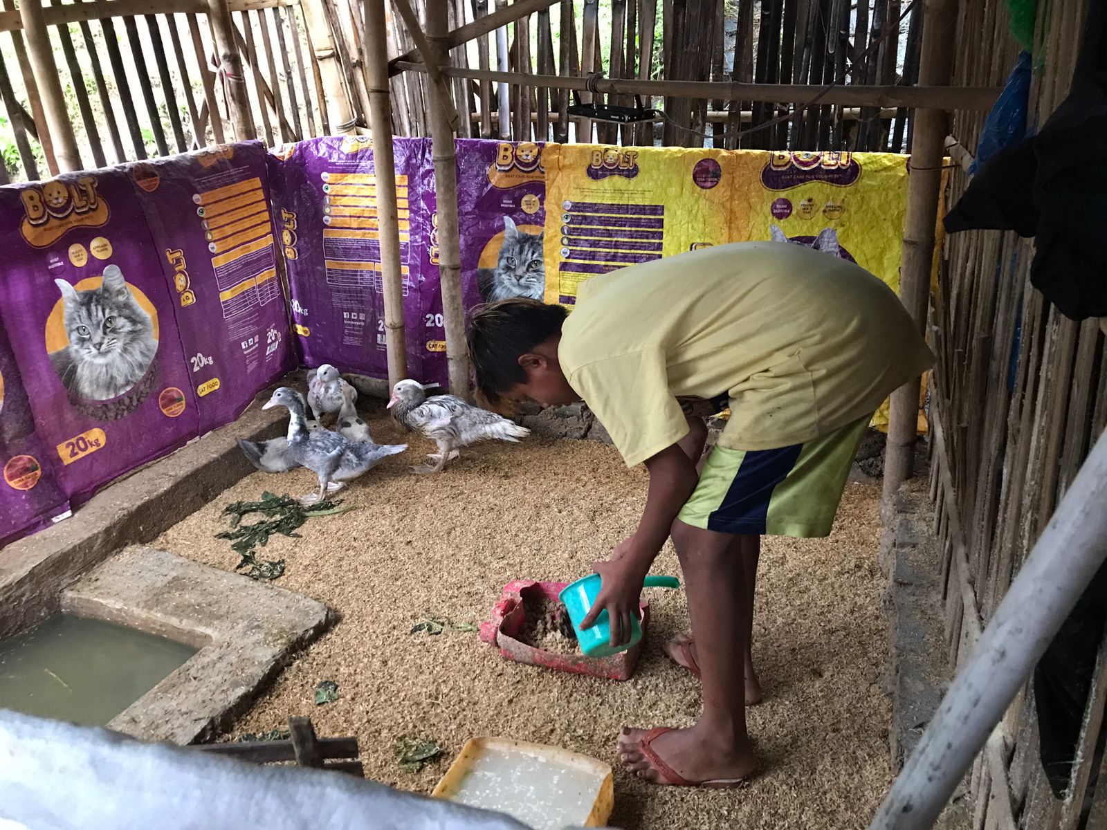Abah Ading yang saat ini tinggal bersama cucu tinggal di satu halaman yang nyatu dengan bebek,ayam peliharaan tetangganya,dimana kondisinya sangat bau,becek dan kotor. Abah jelas tidak punya pilihan lain selain tinggal di tempat ini yang mana dulu kandang kambing yang jadi tumpuan abah saat ini tidak bisa di tempati lagi karna tertutup tanah longsoran. Jadi mau tidak mau abah harus tinggal disini menyatu dengan kandang ayam dan bebek.