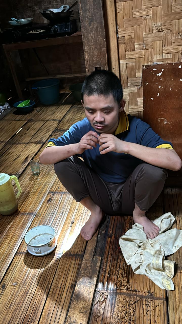 Abah kini tinggal berdua dengan sang anak yang mengidap ODGJ,ia kerap sering mengamuk karena kondisinya yang naik turun. Dengan keterbatasan yang dialami abah saat ini (stroke) abah harus berjuang sekuat tenaga untuk terus bertahan dengan cara memayet baju yang ia ambil dari tetangganya. Keahlian abah dalam menjahit sudah abah lakukan sebelum ia sakit,jadi kali ini walaupun abah kesulitan untuk melakukan itu tapi abah pantang menyerah. Setiap kali mayet abah diberikan upah 50 ribu tergantung dari kerumitan yang ia kerjakan.