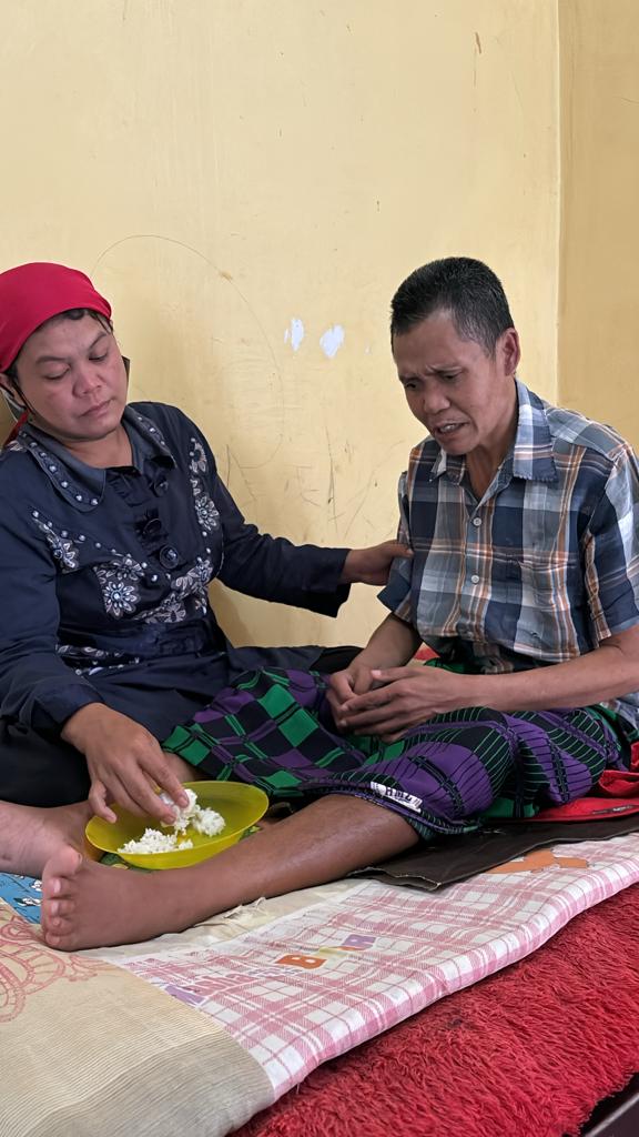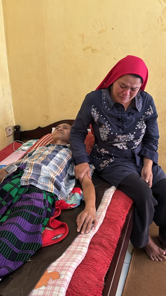 Abah atin terpaksa menjalani hidup dengan serba terbatas apalagi saat ini kondisi abah Atin saat memprihatinkan karena hanya bisa terbaring di tempat tidur akibat kecelakaan yang menimpanya 4 tahun yang lalu.