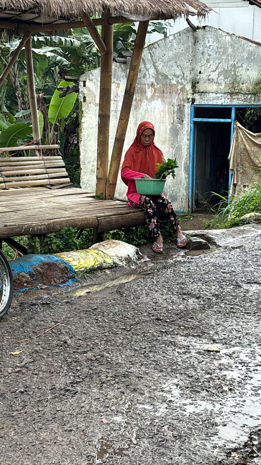Emak hanya bisa terduduk lesu, melamun menahan sedih karena tak berhasil kumpulkan uang untuk sang suami berobat. Sambil terus memperhatikan orang yang lalu lalang untuk membeli sayuran nya berharap ada orang yang membeli sayuran Karena sejak pagi tadi hingga sore baru sedikit yang terjual sayuran nya emak.