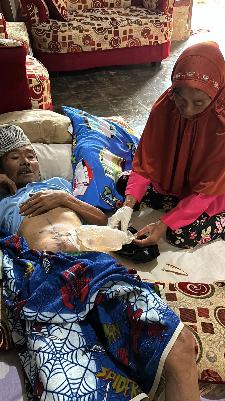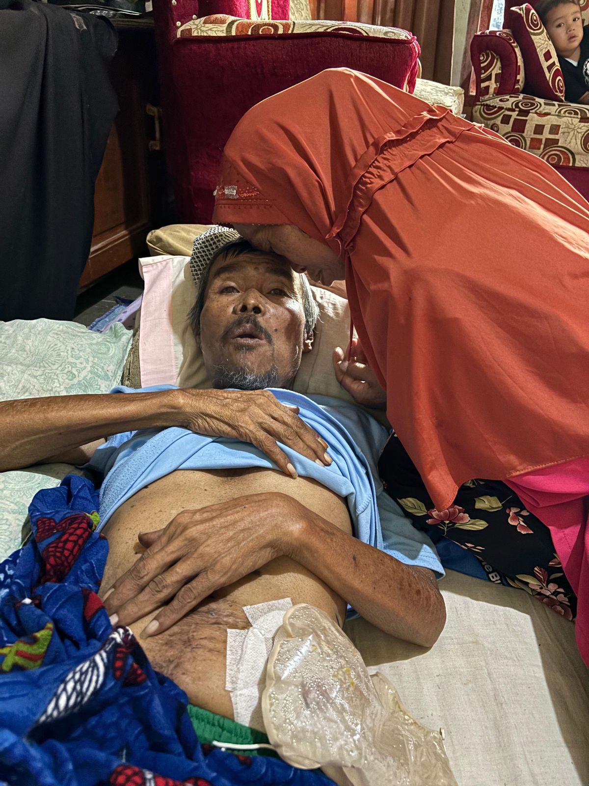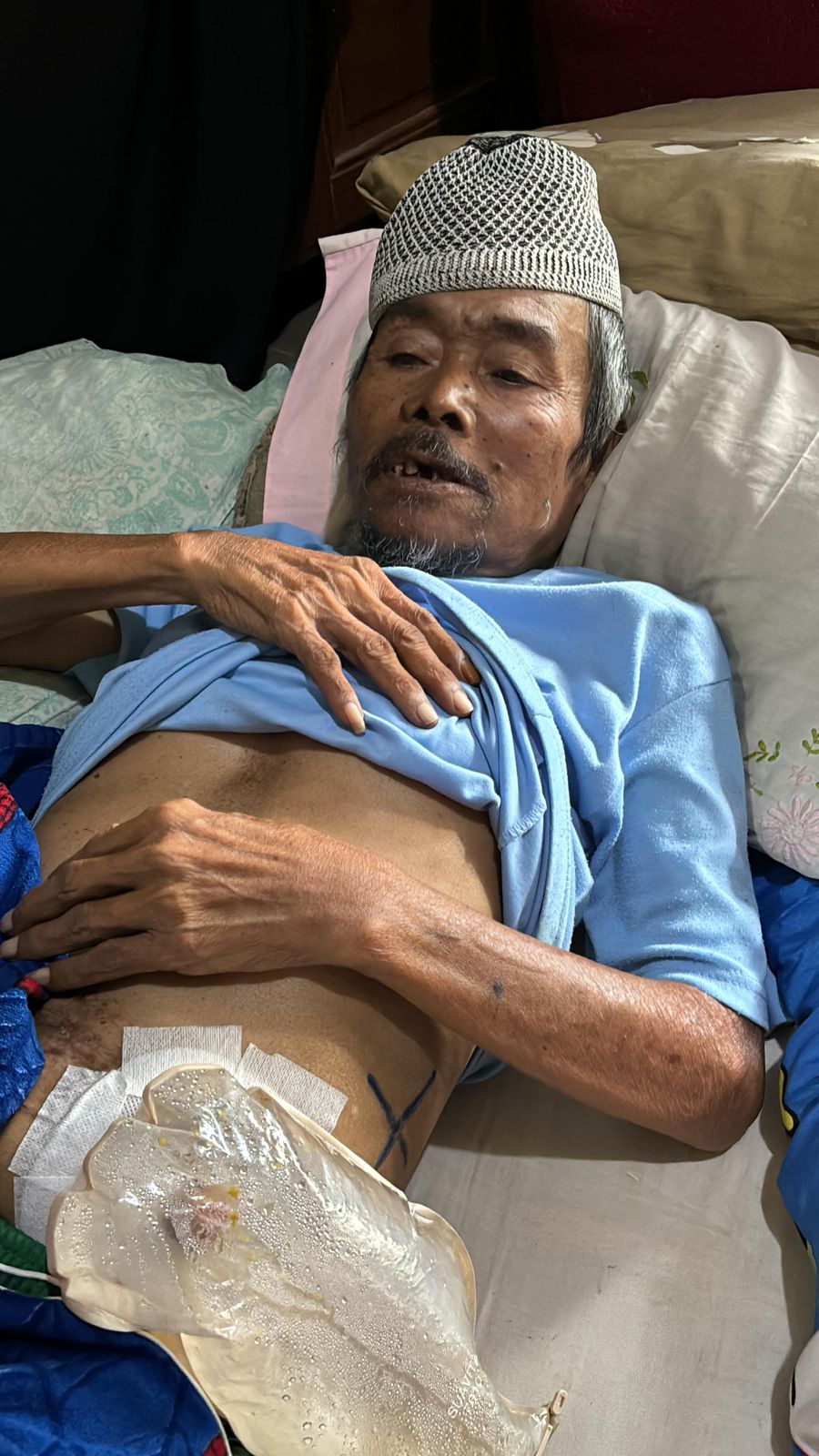 Usus abah Awib terburai di luar perutnya, dan kini kondisinya makin memburuk karena komplikasi,Abah Awib semakin lemas tak berdaya akibat komplikasi dari penyakit kanker usus.