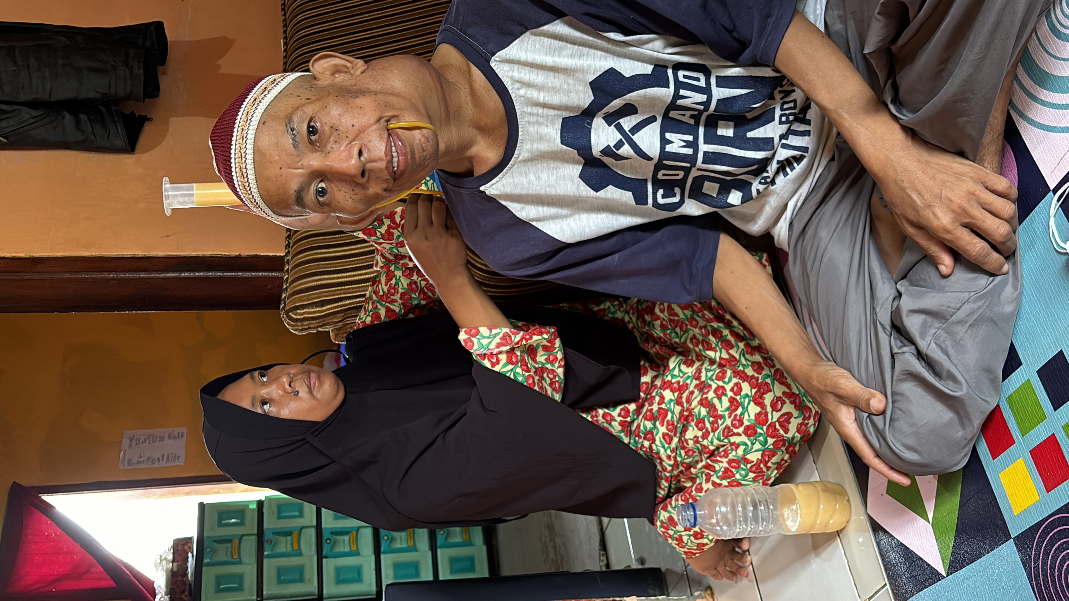 Namun keterbatasan tak menyurutkan abah untuk bisa terus berobat demi menjemput kesembuhan nya. Abah saat ini pun makan melalui selang yang dipasang sampai lambung nya karena benjolan yang terus membesar.