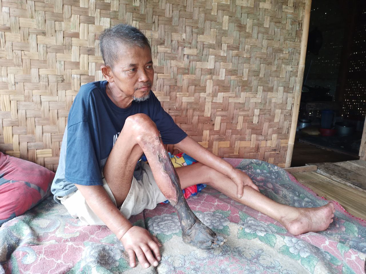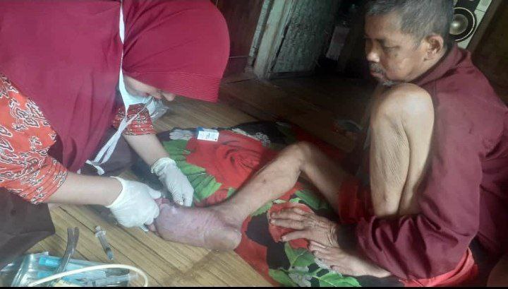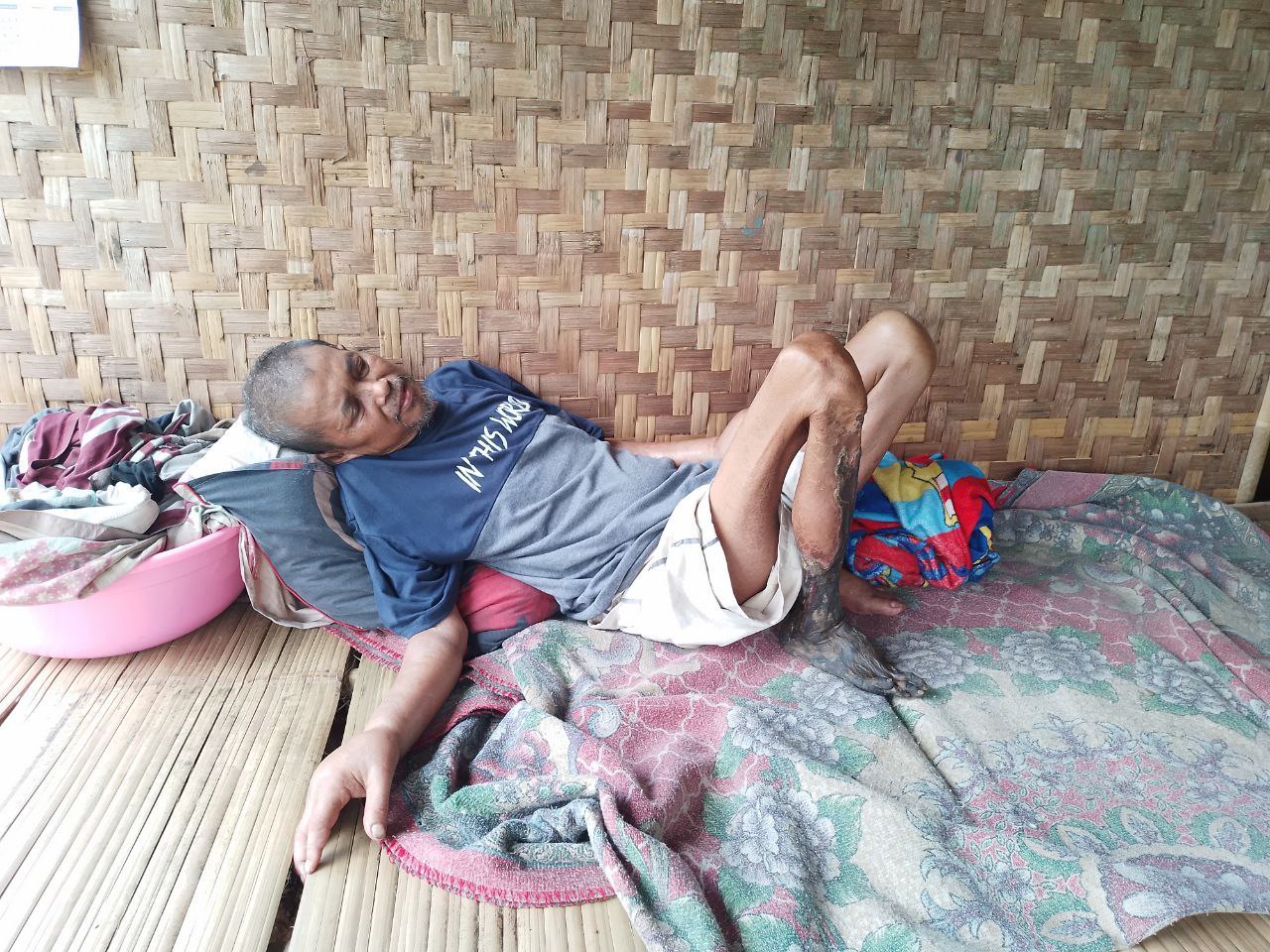 Setiap saat, Abah Kandi (62 Tahun) selalu merintih dan mengerang berusaha menahan sakit yang bersarang di kaki sebelah kanan nya. Semakin hari, luka tersebut semakin membusuk karena seharusnya ia dirawat inap setelah di amputasi.