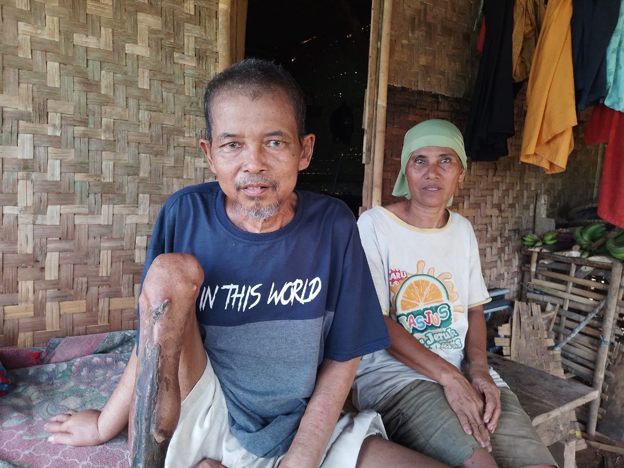 “Udah hampir 7 bulan bapak seperti ini. Sekarang lukanya semakin hari semakin parah dan membusuk. Bapak hanya bisa terbaring di kasur sambil merintih kesakitan" Ungkap Mak Maryani, istri Abah kandi