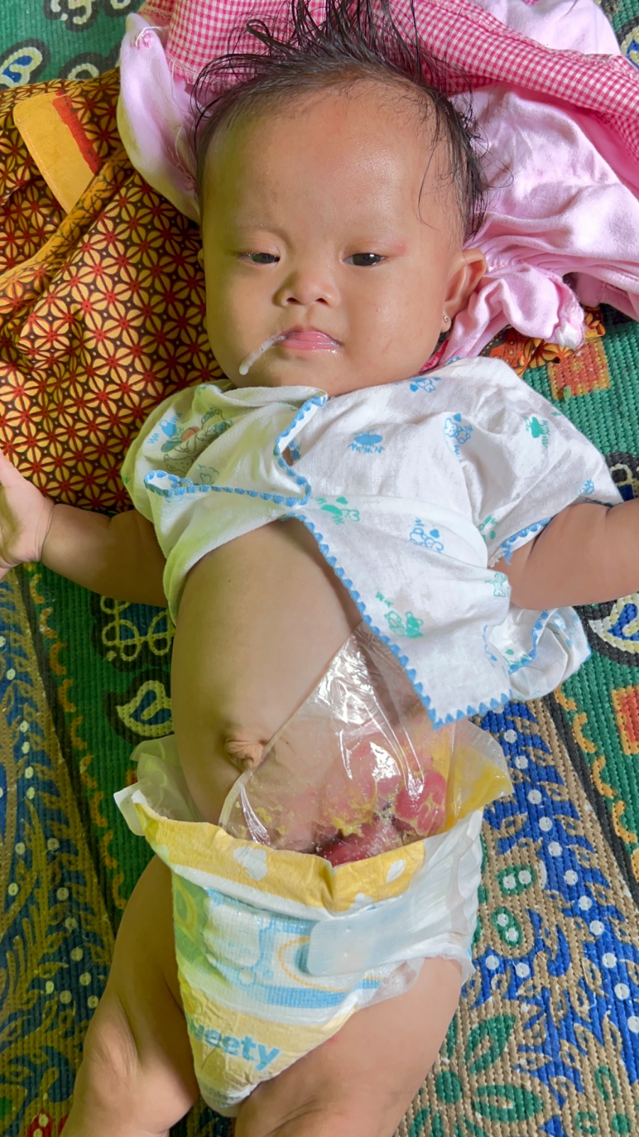 Usus Adik Adhifa (6 bulan) terburai di luar perutnya, dan kini kondisinya makin memburuk karena komplikasi.