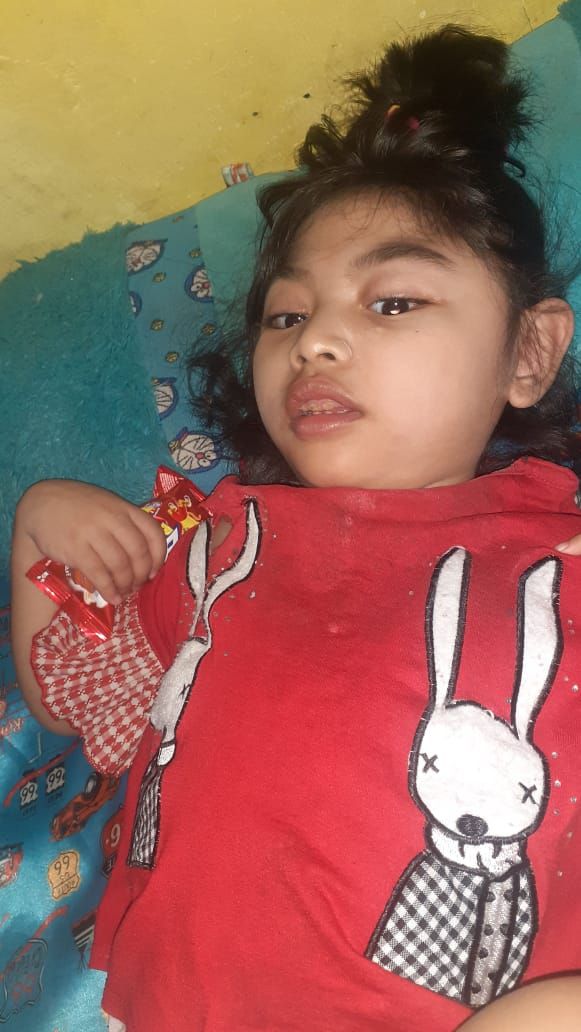 Gadis kecil ini bernama Sri Wahyuni berusia 5 tahun. Menderita Celebral Palsy membuatnya tidak dapat melakukan aktifitas apapun, bahkan sampai di usia sekaragn ini Dek Sri belum dapat berbicara dan berjalan. Sehari-hari Sri hanya bisa menghabiskan waktu di tempat tidur.