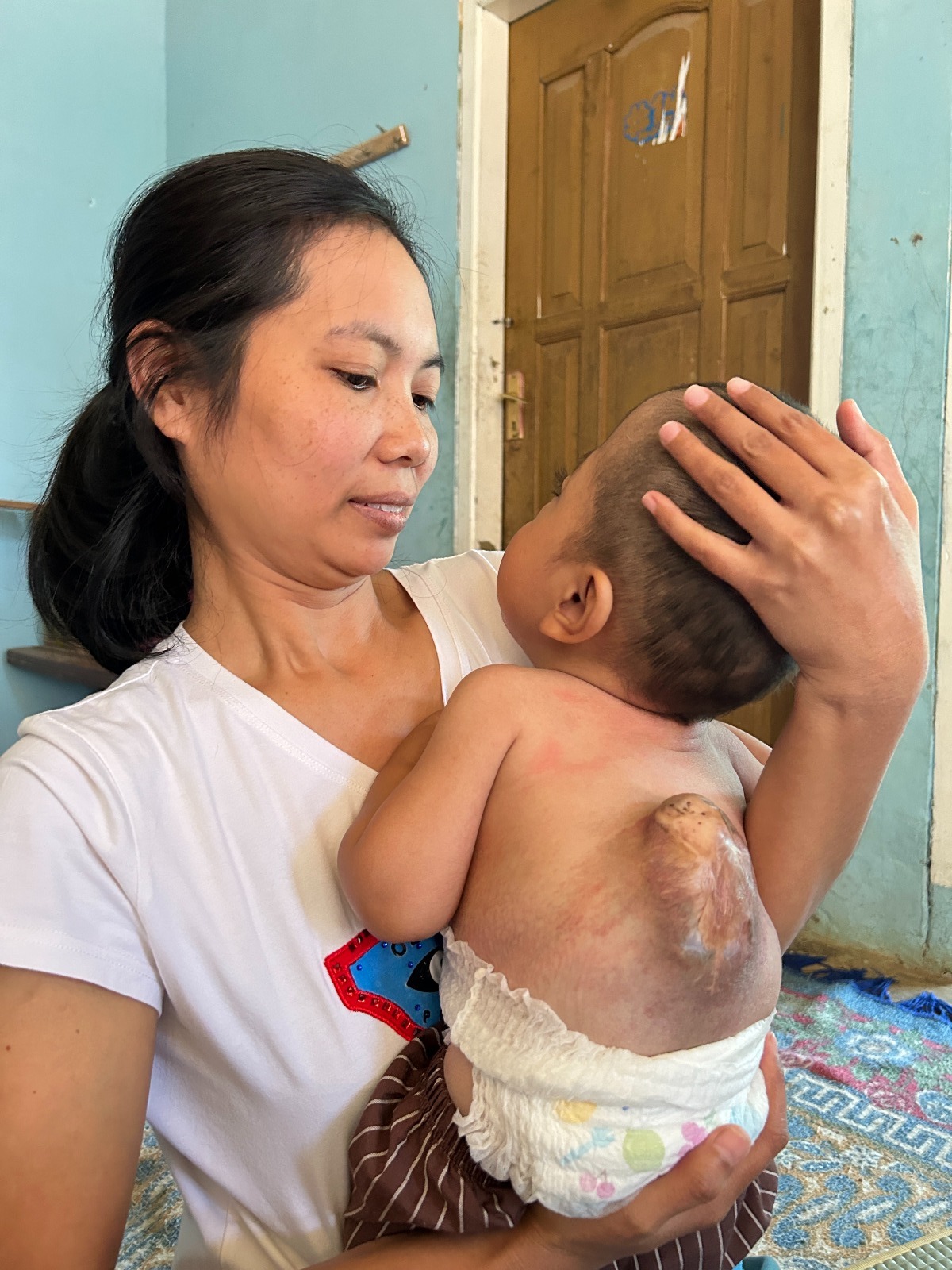 Setiap hari Adila hanya bisa menjerit menahan sakit, gatal, dan panas yang begitu menyiksa tubuh mungilnya. Gumpalan daging di punggung nya terus membengkak, seiring bertambahnya berat badan Adila.