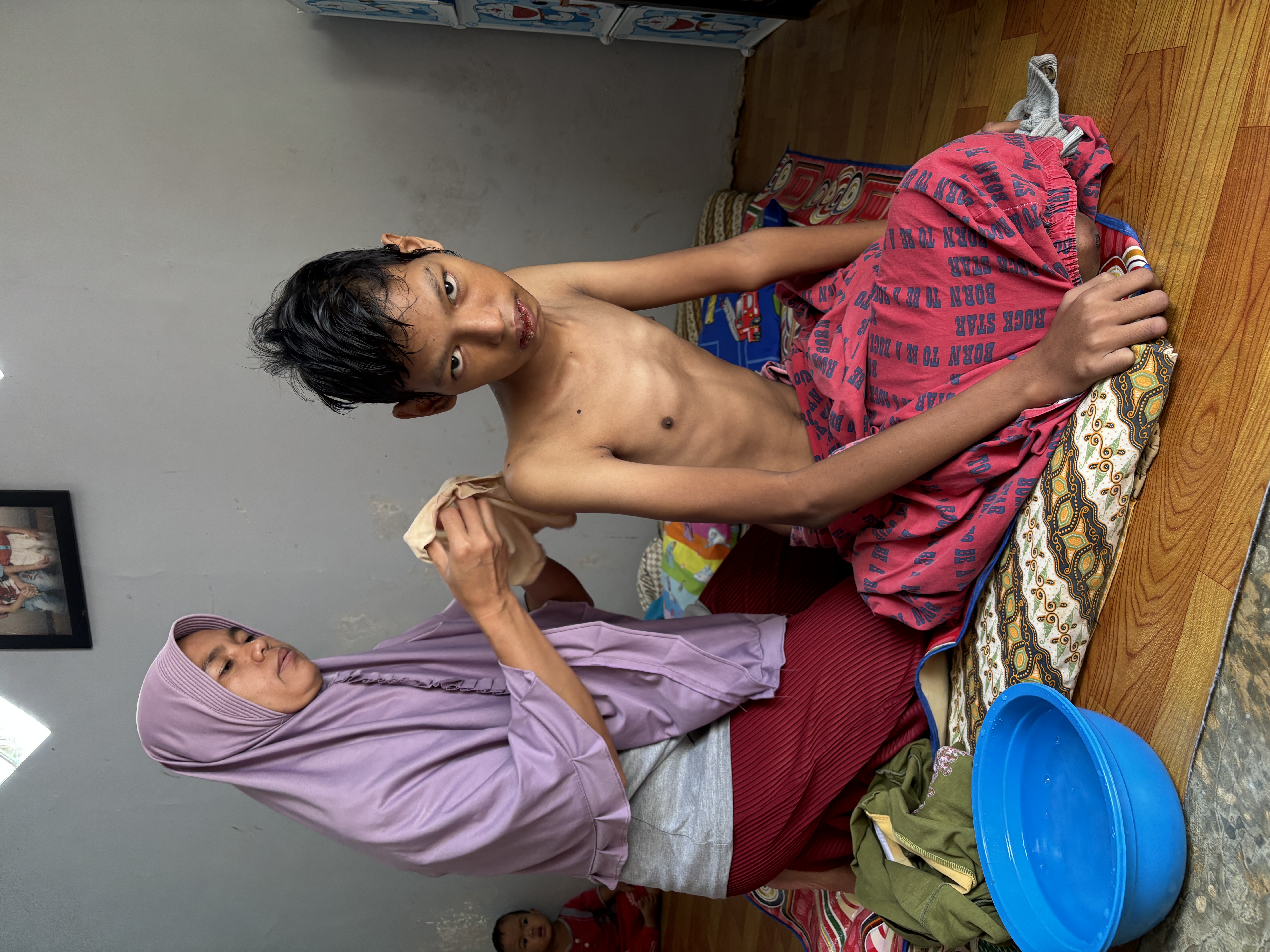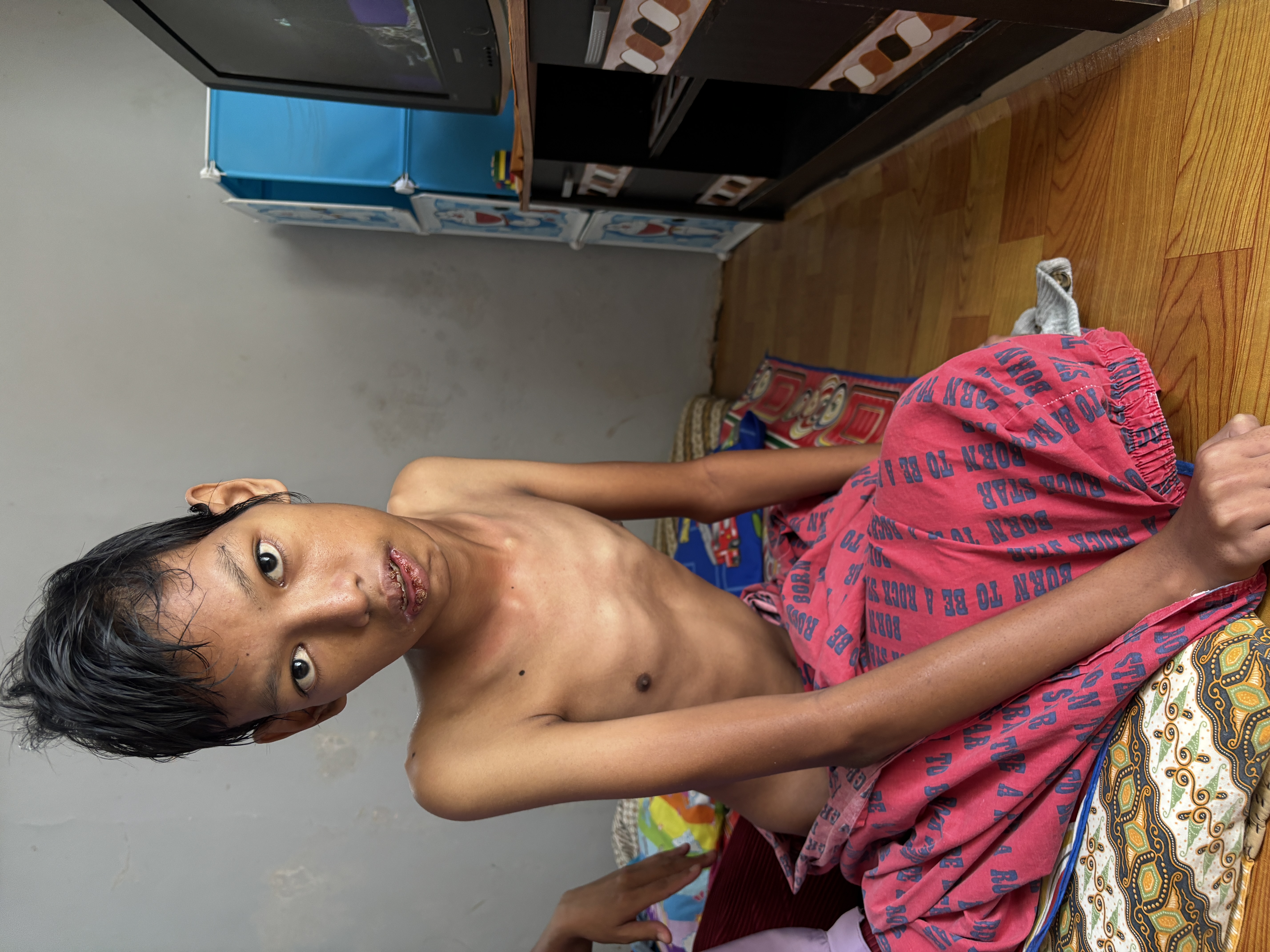 Meski badan nya terlihat seperti anak kecil, Ahmad dan Farel saat ini sudah berusia 16 dan 3 tahun. Kakak beradik ini pun hanya bisa berbaring karena lumpuh otak dan mengalami kekerdilan karena badannya.