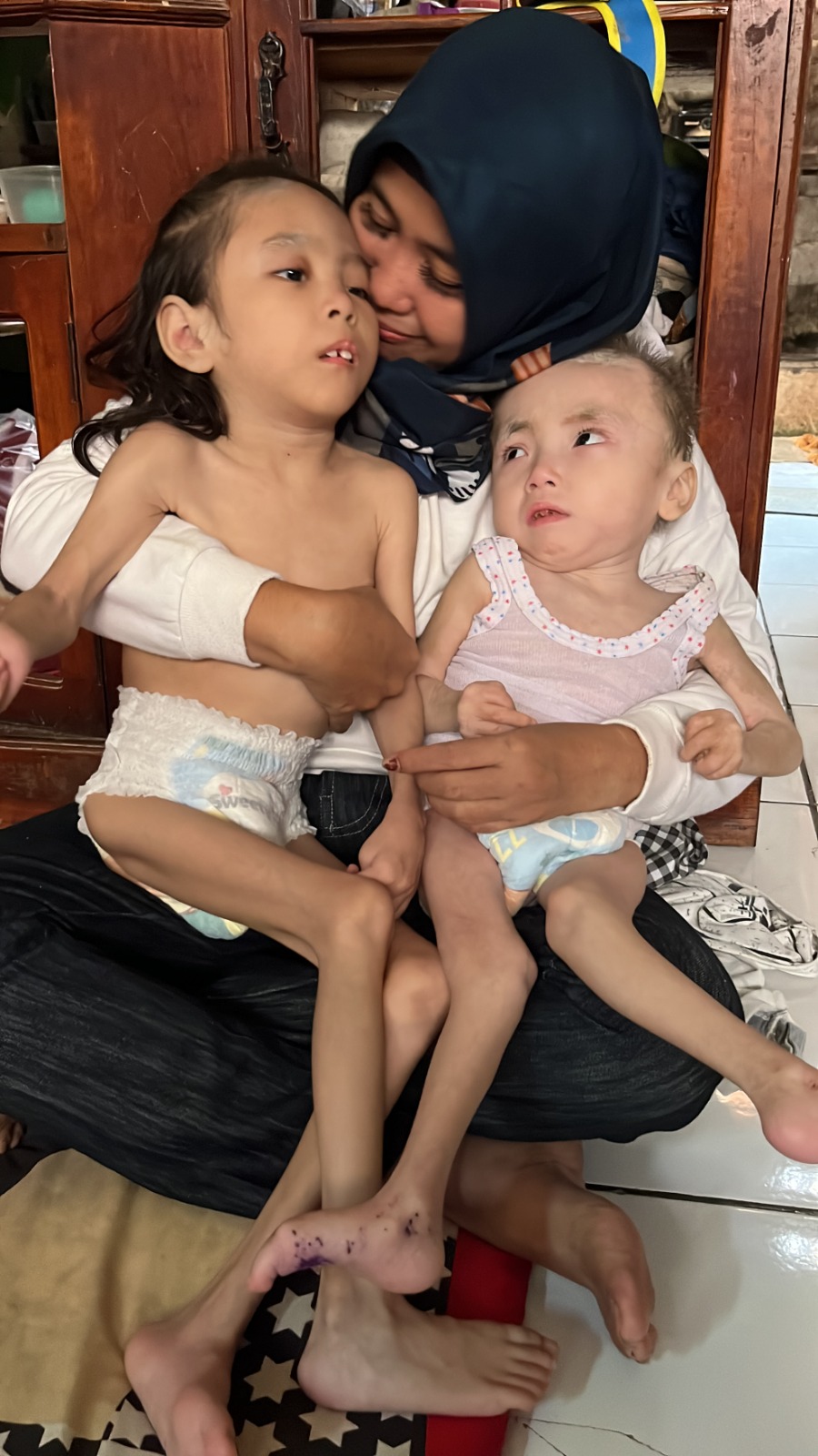 Beliau bekerja keras demi menghidupi kedua anak disabilitasnya selama ini yang menderita cerebral palsy,kelumpuhan,syndrome mermaid dan seabrek penyakit lainnya.