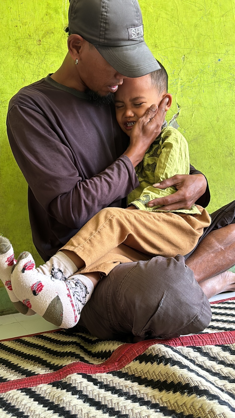 "Kemarin itu Saya mau jual HP saya satu-satunya bu agar bisa bawa Alvin operasi dan kemoterapi tapi dari kemarin ga ada yang mau beli hp saya."- ayah Alvin dengan air mata yang menetes.