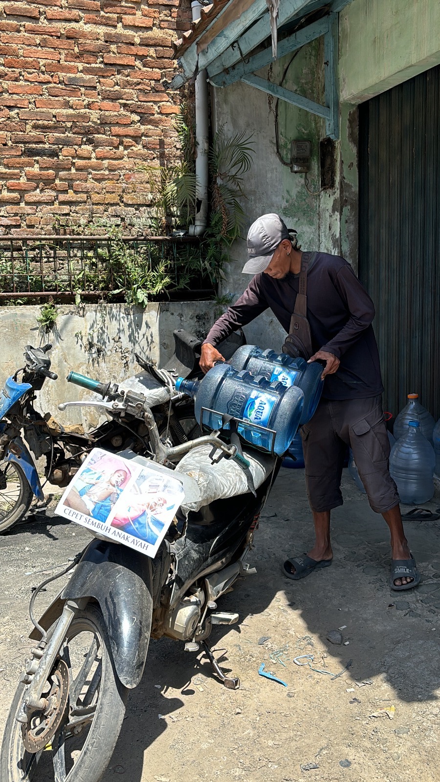 Sambil mengantar galon dari rumah ke rumah,hati sang ayah tidak pernah tenang mengingat anak nya yang terserang tumor otak yang sangat mematikan,membutuhkan operasi dan kemoterapi yang membutuhkan biaya ratusan juta.