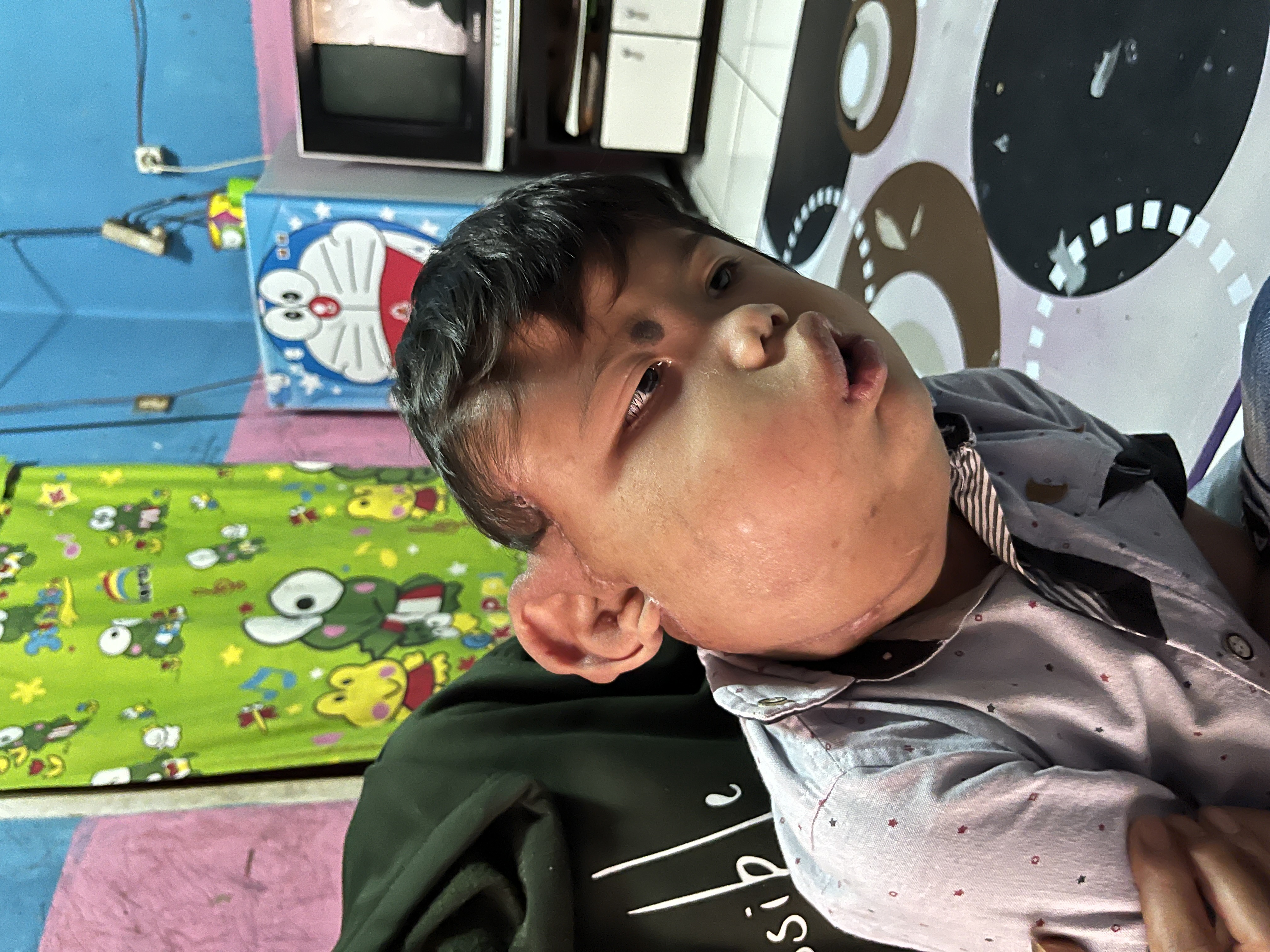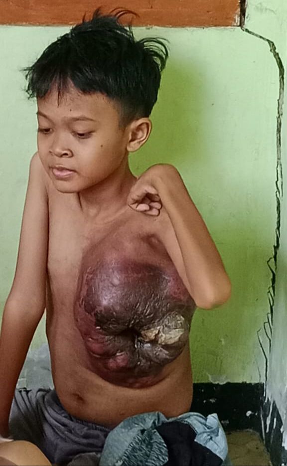 Evan (7) dilahirkan dalam kondisi Kanker Limfoma. Awalnya hanya benjolan kecil sebesar kelereng di dagu nya. Hanya dalam waktu satu bulan kepala Evan miring ke kiri karena benjolannya terus membesar dan menekan wajahnya. Evan sempat menjalani operasi pertama, namun kankernya masih tumbuh dan terus mengeluarkan cairan dari dalam telinga. Evan pun sering menjerit dan menangis kesakitan.