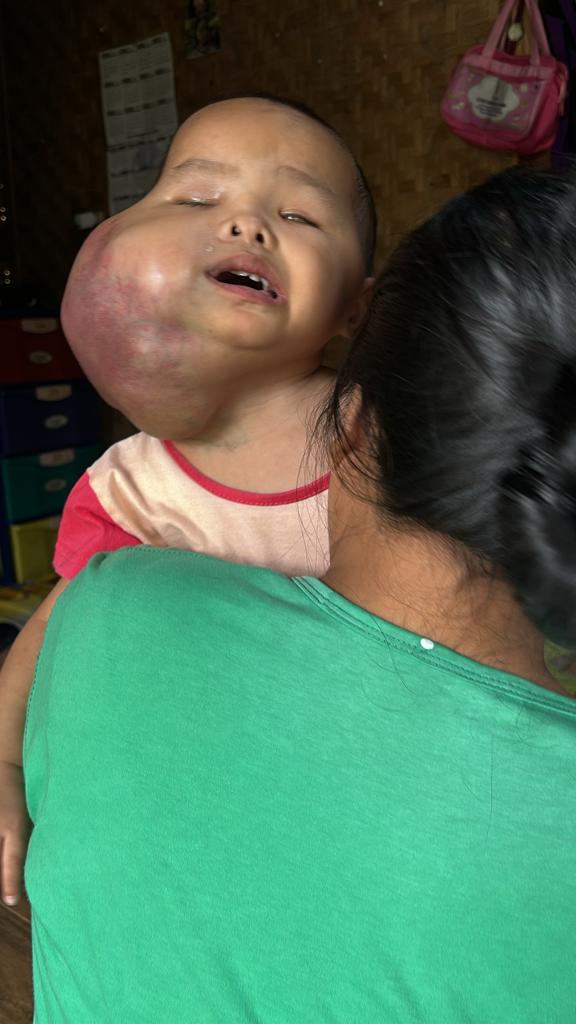 Keadaan lain terjadi pada Adila, usianya baru 16 bulan tapi ia harus merasakan sakit yang teramat karena tumor dipunggungnya. Bahkan saat ini Adila hanya bisa menangis karena benjolan itu terus membesar dan rasanya sakit sekali.