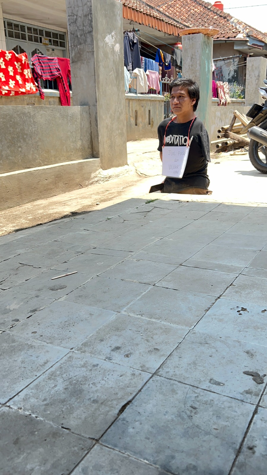 Kalau sudah lelah Apan menggunakan tubuh nya untuk berjalan dengan cara menggelinding,karena tangan nya sering sakit ketika sudah selesai jualan pulsa..tidak banyak hanya 1-3 orang saja yang membeli pulsanya Apan dengan keuntungan 1000-2000 per isi pulsa.