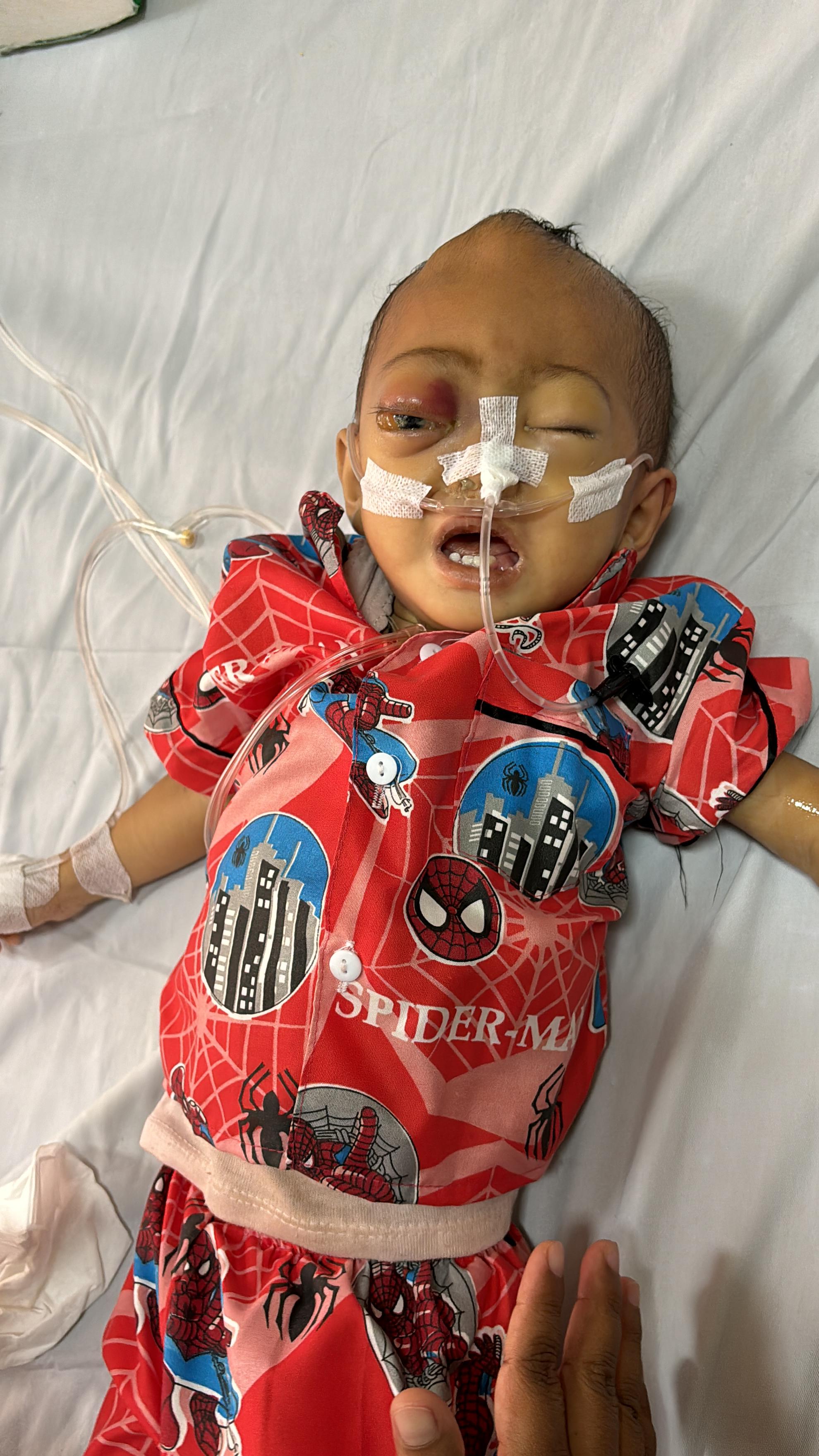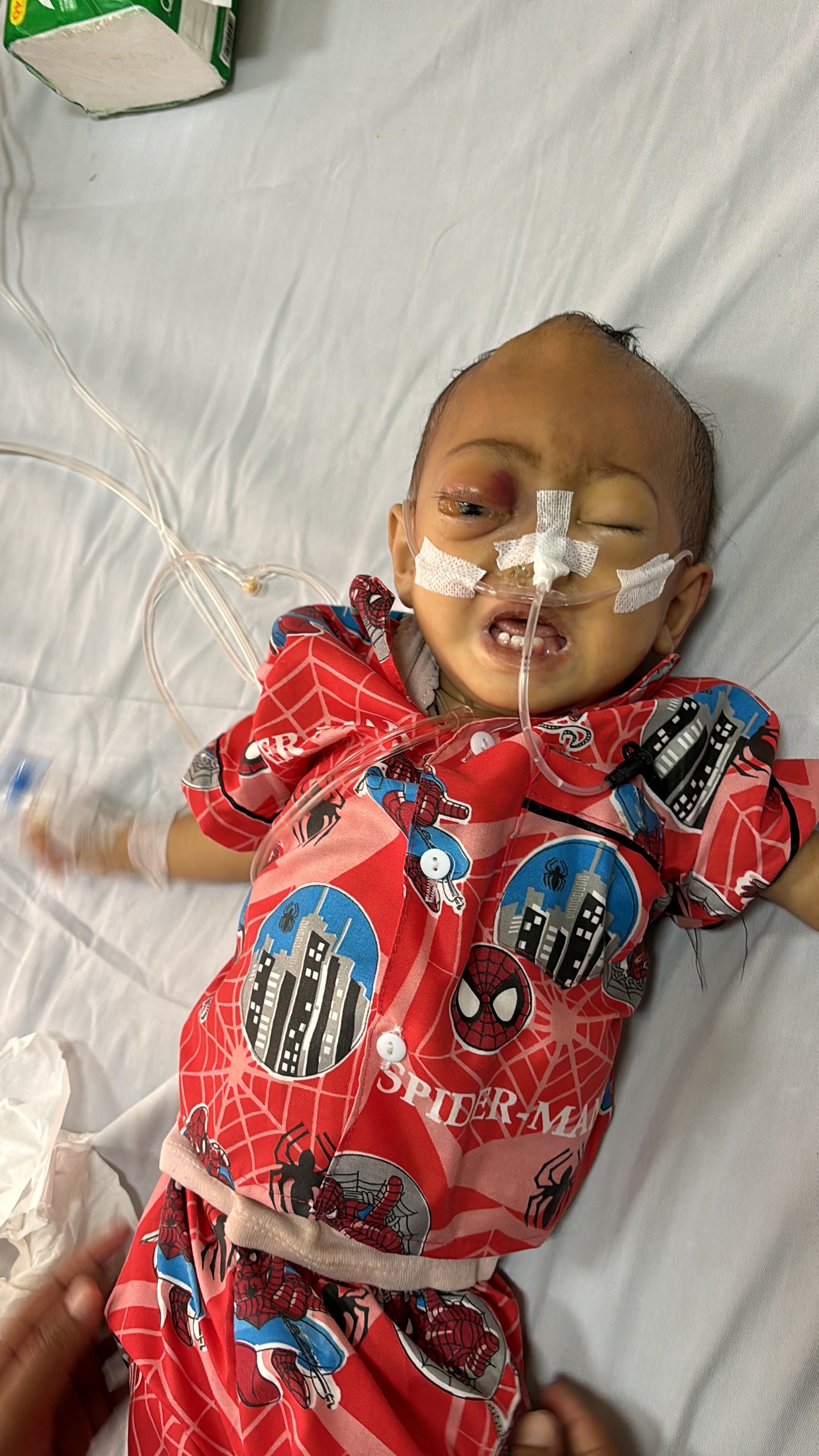 Dik Aris saat ini usianya 10 bulan,sejak 7 bulan yang lalu benjolan kecil itu muncul di kepala aris,saat benjolan itu muncul aris demam tinggi.