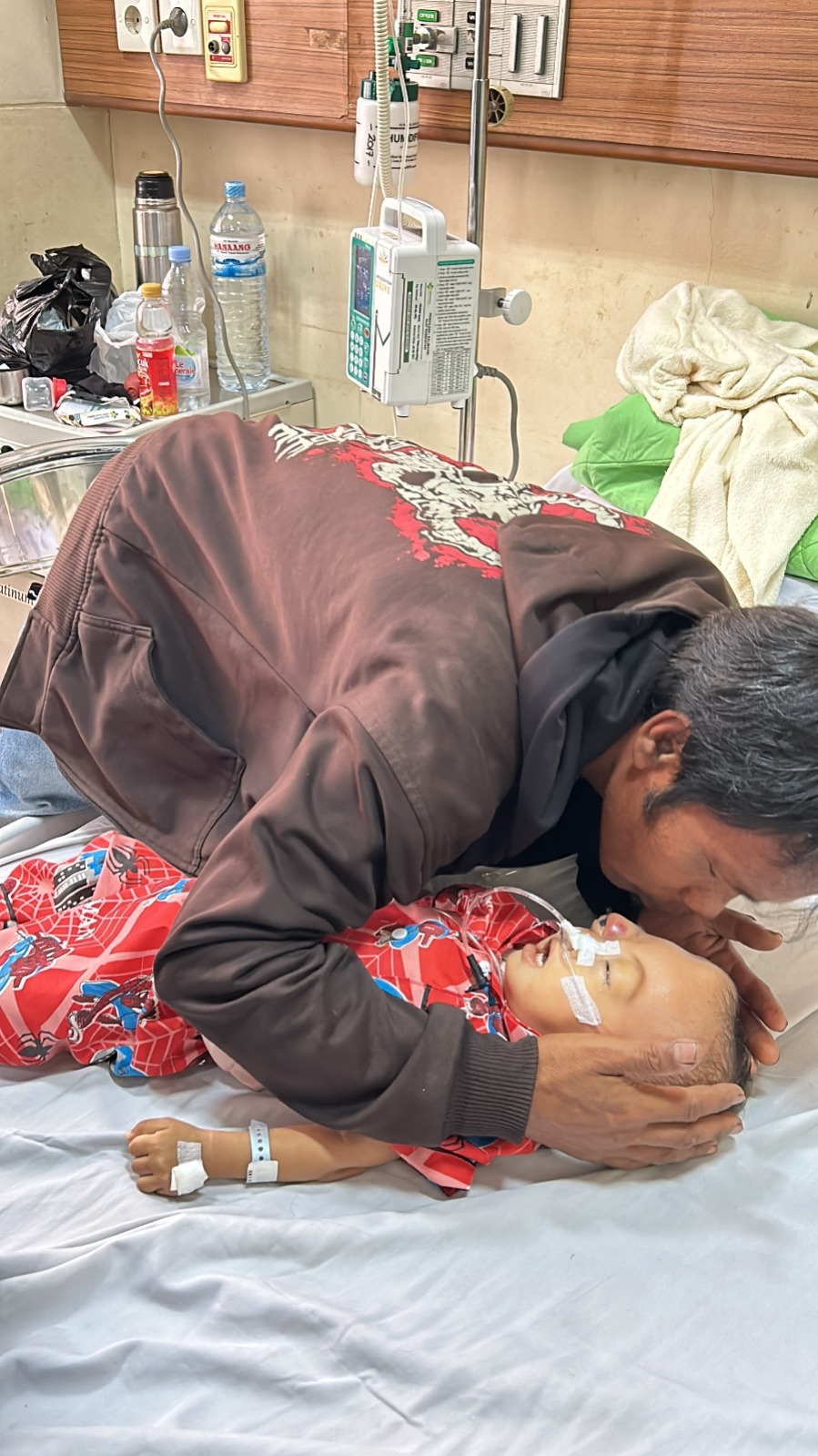Sangat berat perjuangan orang tua Aris sampai ia ungkapkan melalui tetesan air mata yang tak terbendung. ia sudah mencoba pinjam uang sana-sini demi membawa sang buah hati untuk berobat bahkan untuk operasi tapi upaya tersebut masih sangat kurang.