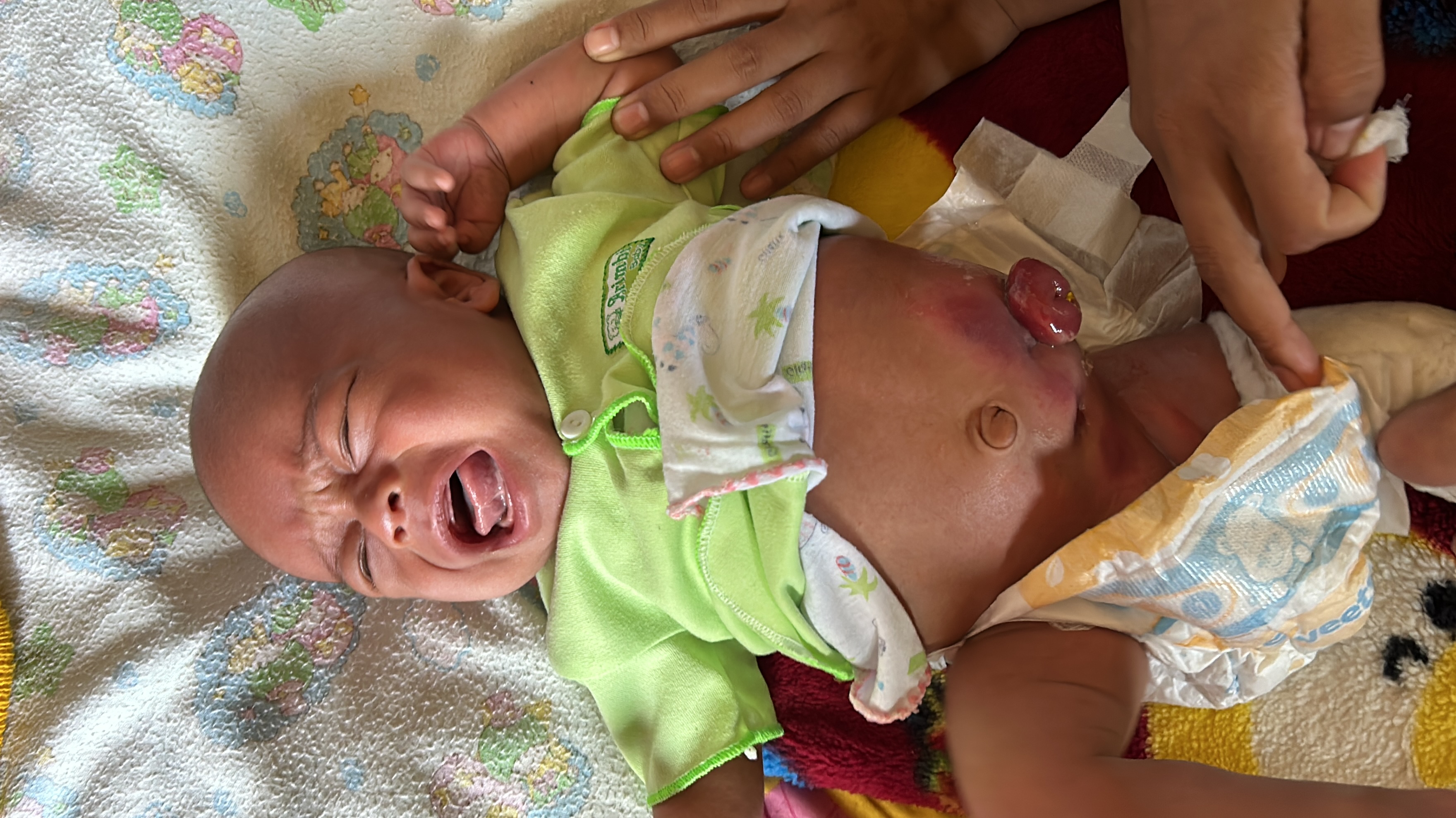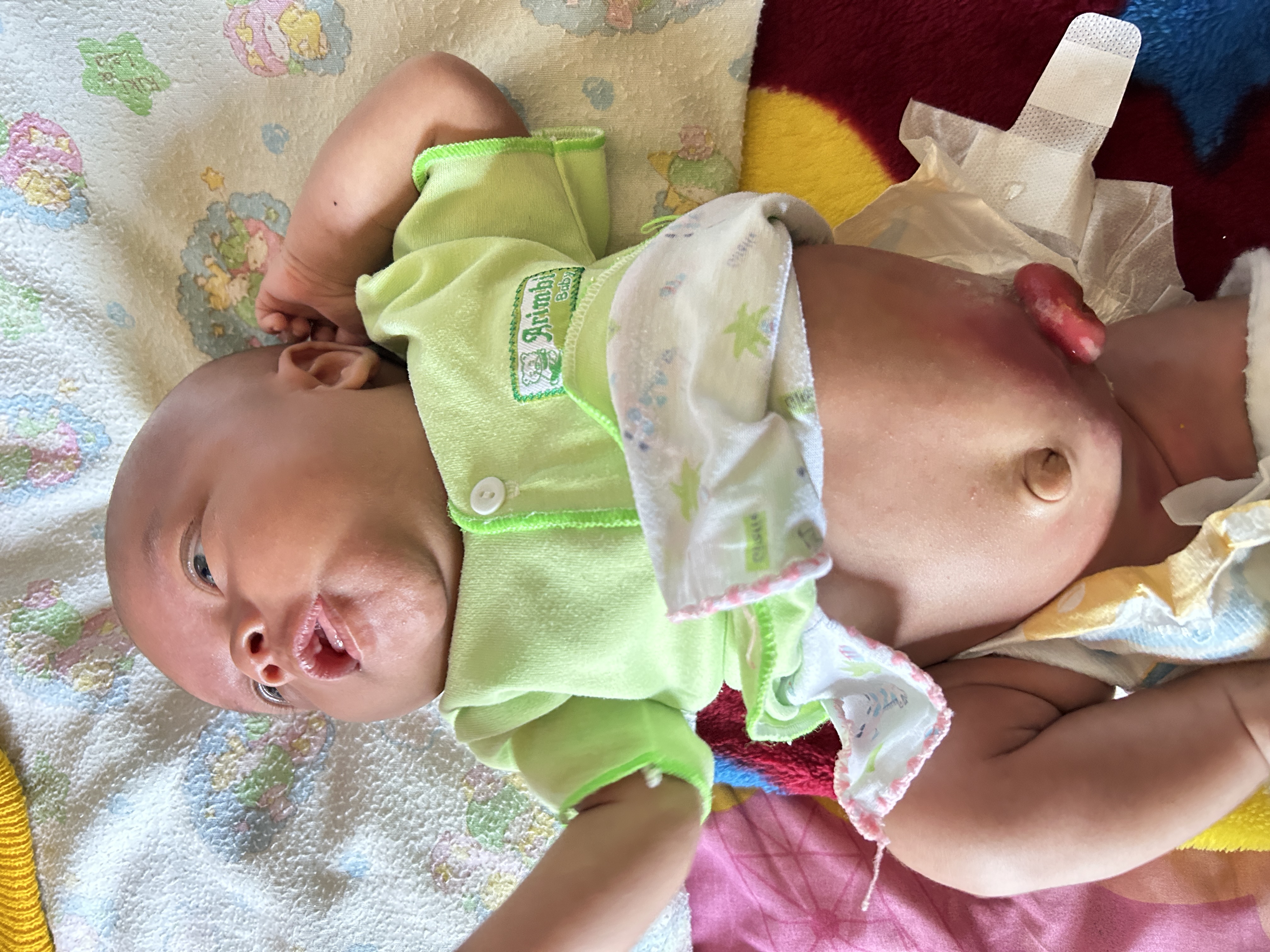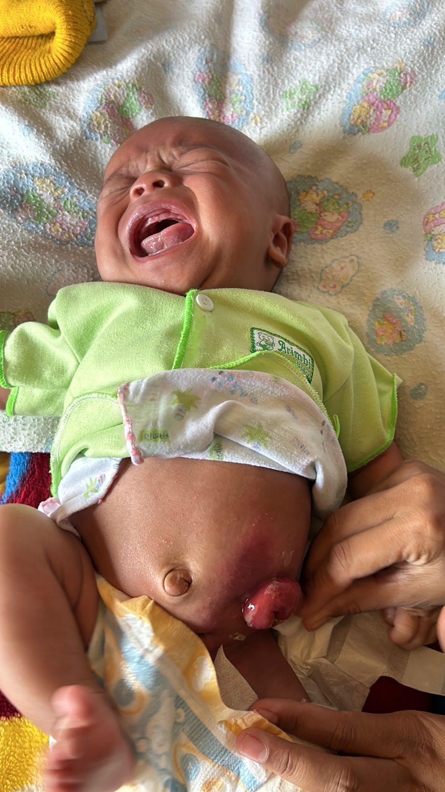 Arkhan (1 bulan) bayi lucu dan menggemaskan ini sejak lahir memang tak punya anus, perutnya harus dibuat lubangi agar Arkhan bisa BAB. Kakinya juga bengkok dan ada kelainan di kelaminnya (lubang pipis nya ada 2).