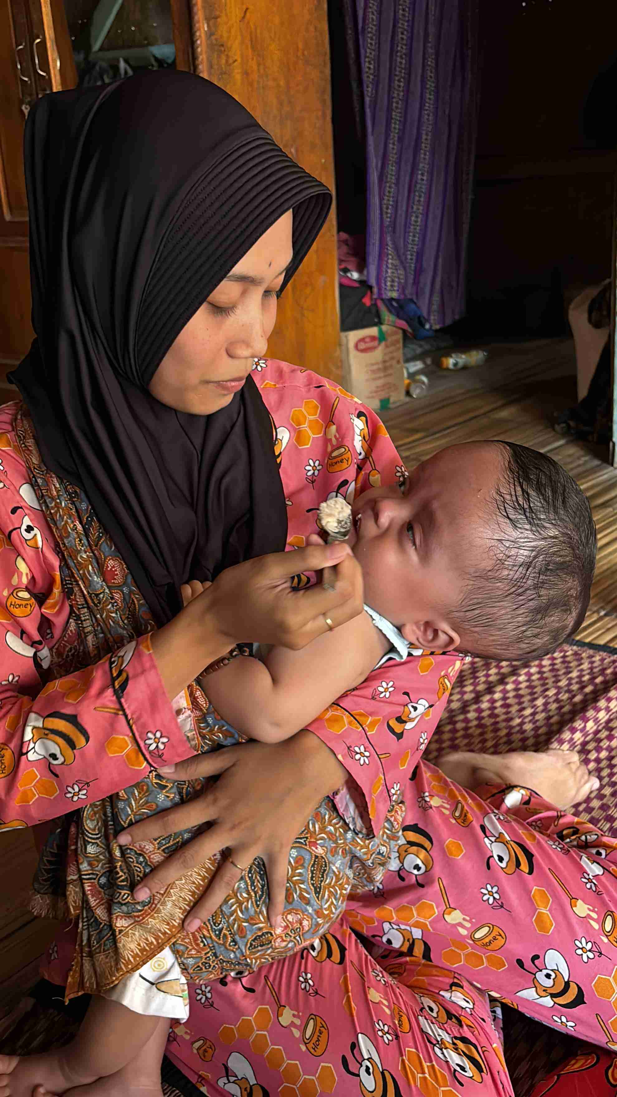Semakin lama kepala Azka semakin membesar, dia sampai gak bisa angkat kepalanya. Bahkan Azka juga sering mengerang menahan sakit di kepalanya namun tak bisa teriak. Kadang saya berfikir untuk gantiin posisi Azka..” ujar Ibunda Azka sedih.