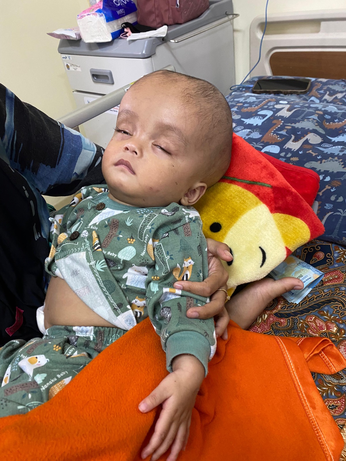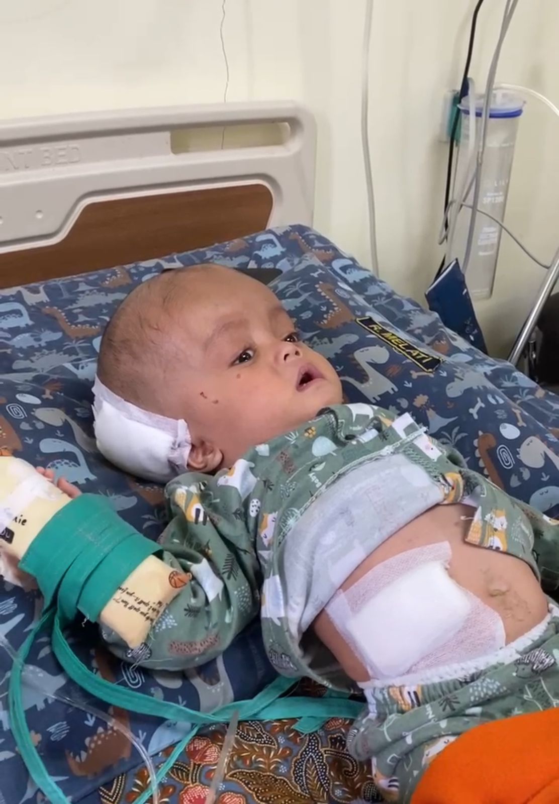 Sejak lahir, Azka sudah harus dirawat di NICU. Dokter mengatakan ada penumpukan cairan yang menyebabkan kepalanya semakin lama kian membesar. Hampir setiap hari bayi mungil itu terus menahan sakit. Kini, usianya semakin bertambah bukan kondisinya membaik justru semakin memburuk. kondisi Azka semakin memprihatinkan.