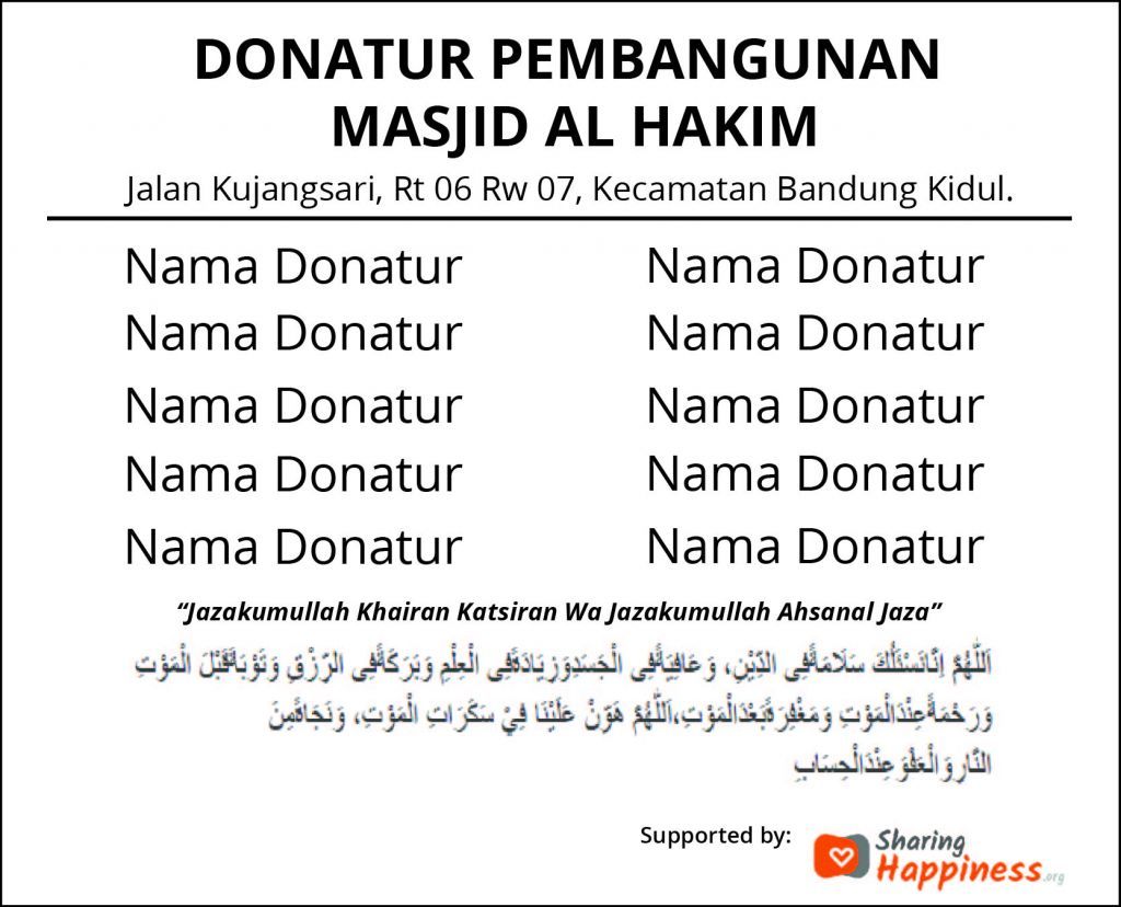 Bagi Sahabat yang berdonasi diatas Rp 5.000.000 akan mendapatkan penghargaan khusus dari pihak masjid yaitu pencantuman nama pada plakat masjid. Model plakat dapat dilihat pada bagian penghargaan campaign.