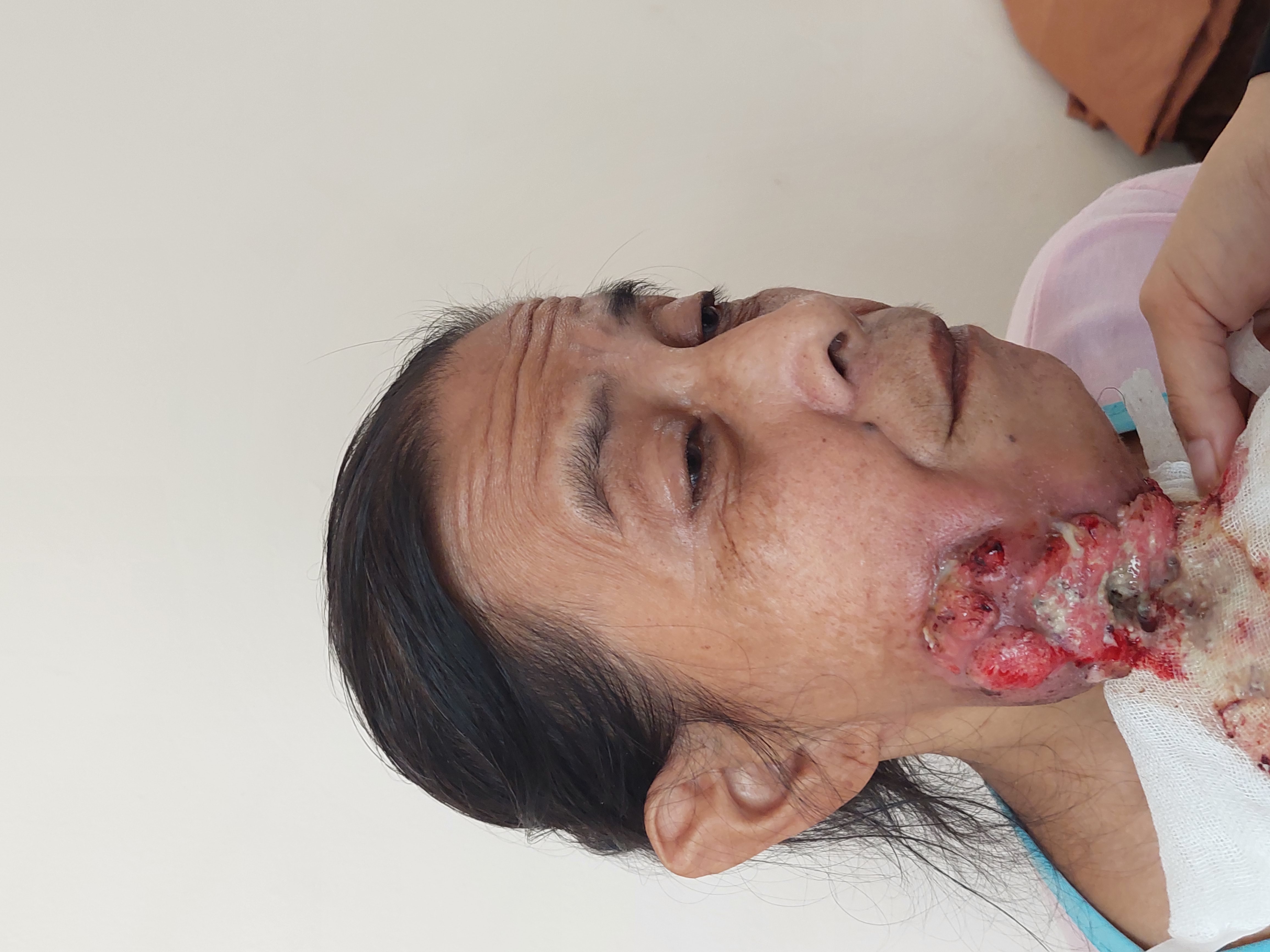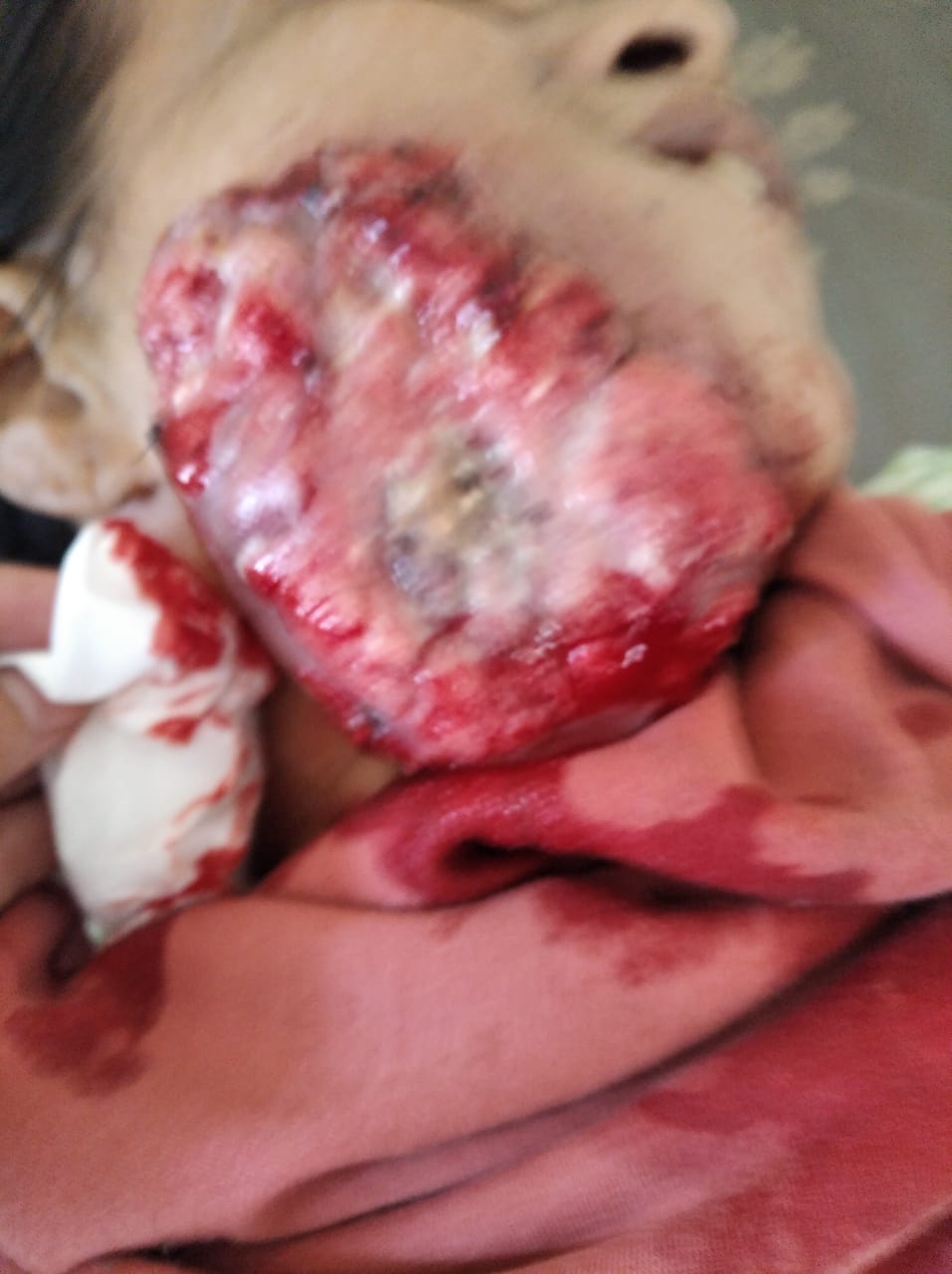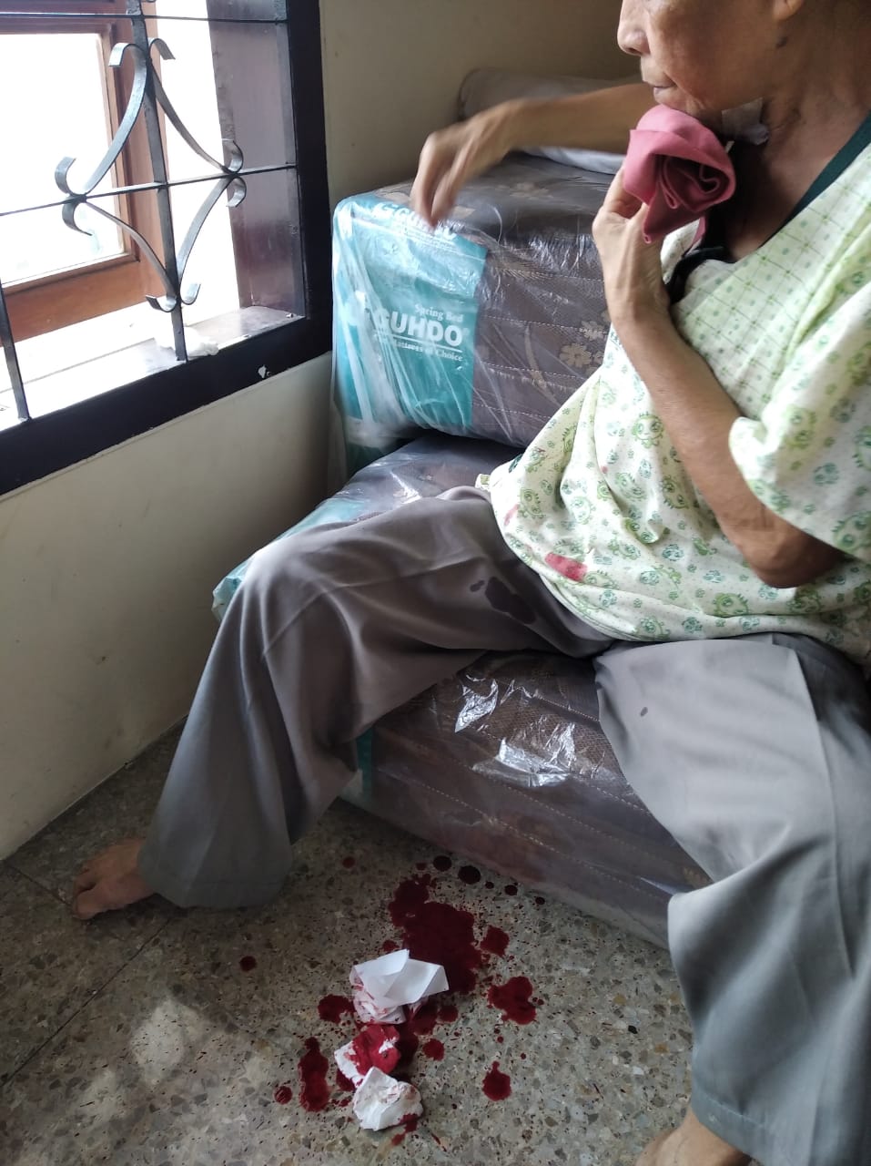 Setiap malam Ibu Mamah harus menahan rasa sakit di dagunya, tak jarang nanah dan darah segar keluar mengalir dari dagunya sedikit demi sedikit hingga kain kasa yang menahannya tak mampu menampungnya.