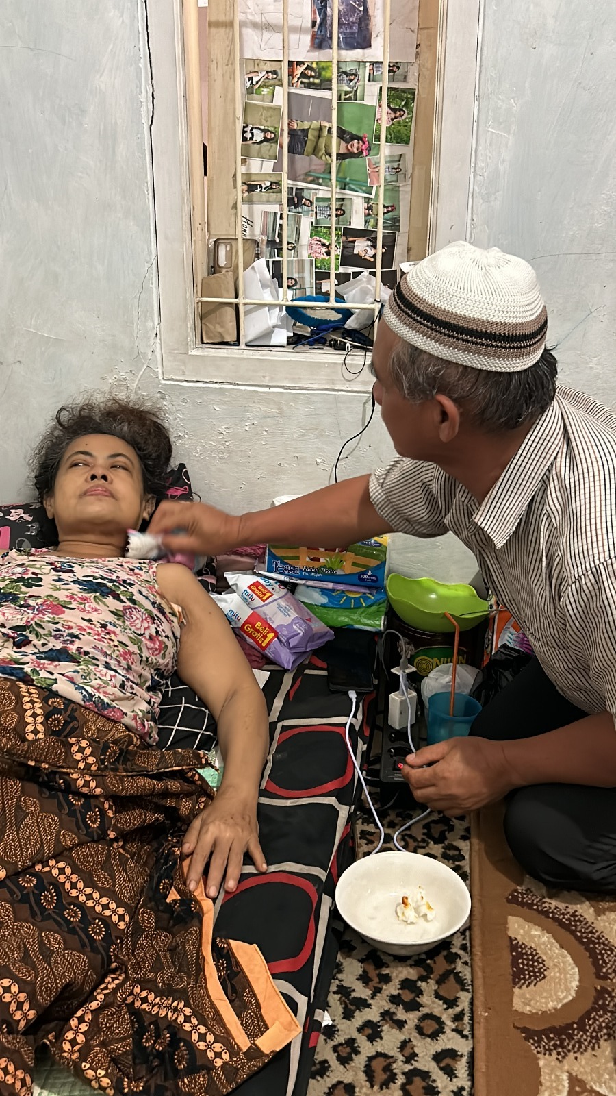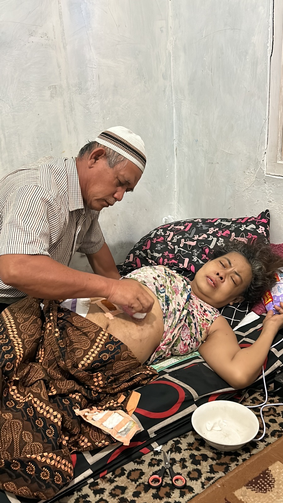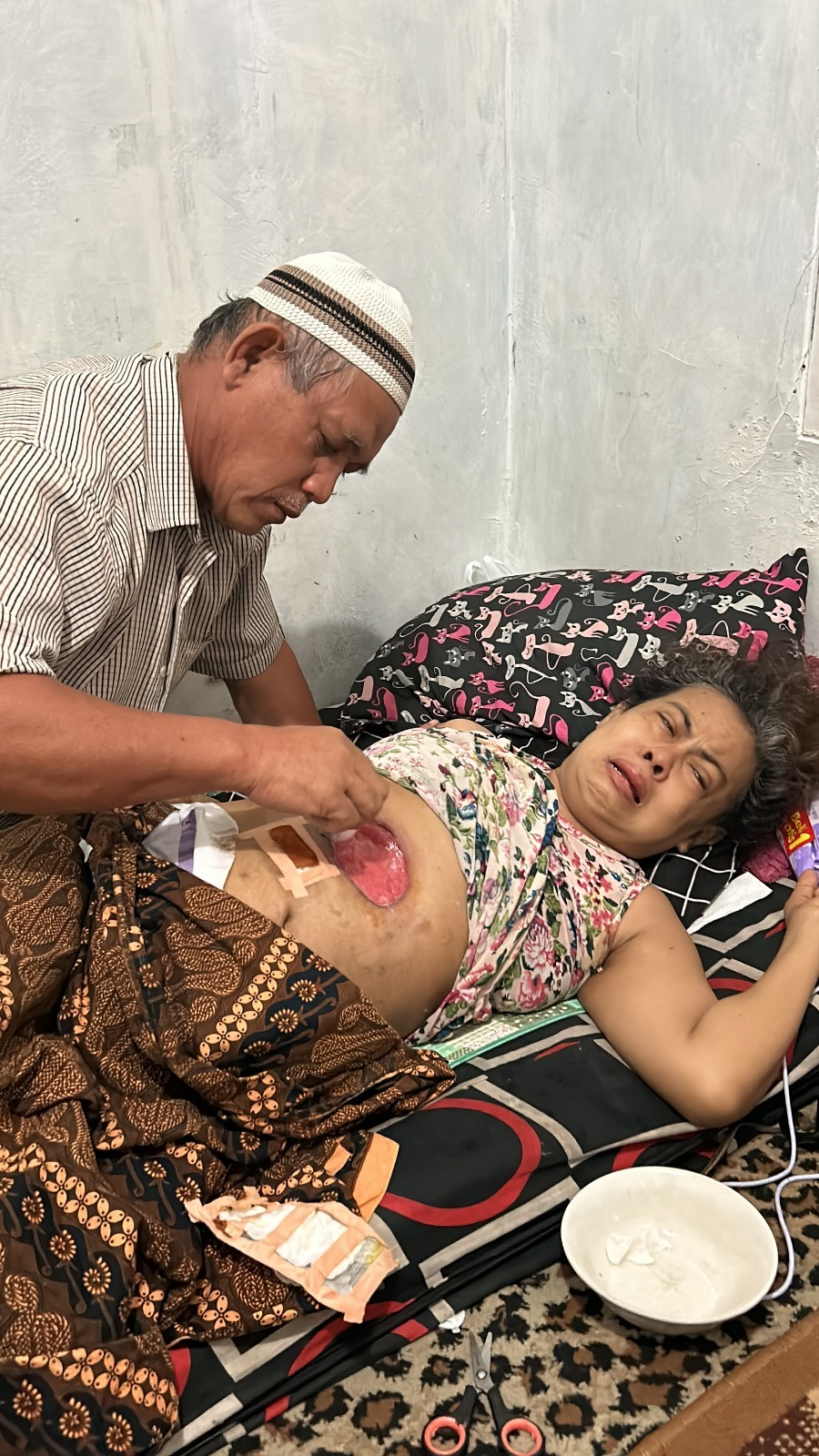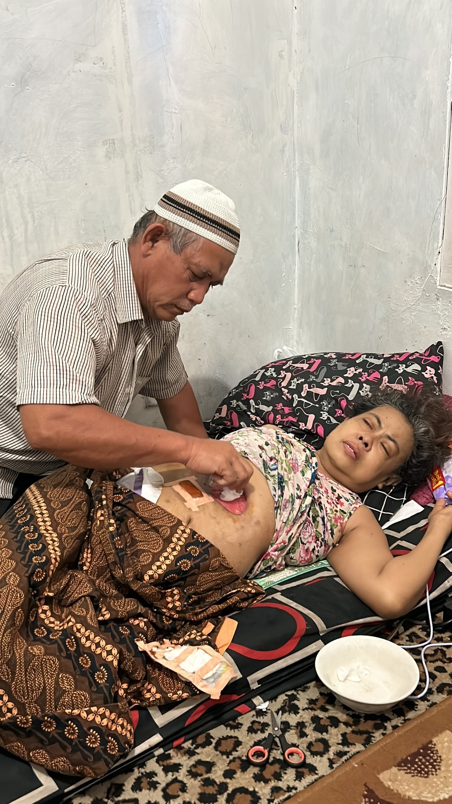Bu Yuyun yang selama 3 bulan ini menahan sakit yang amat sangat,luka di perut bolong hingga mengeluarkan bau tak sedap menyeruak di kala keluarga bu yuyun membersihkan luka nya.