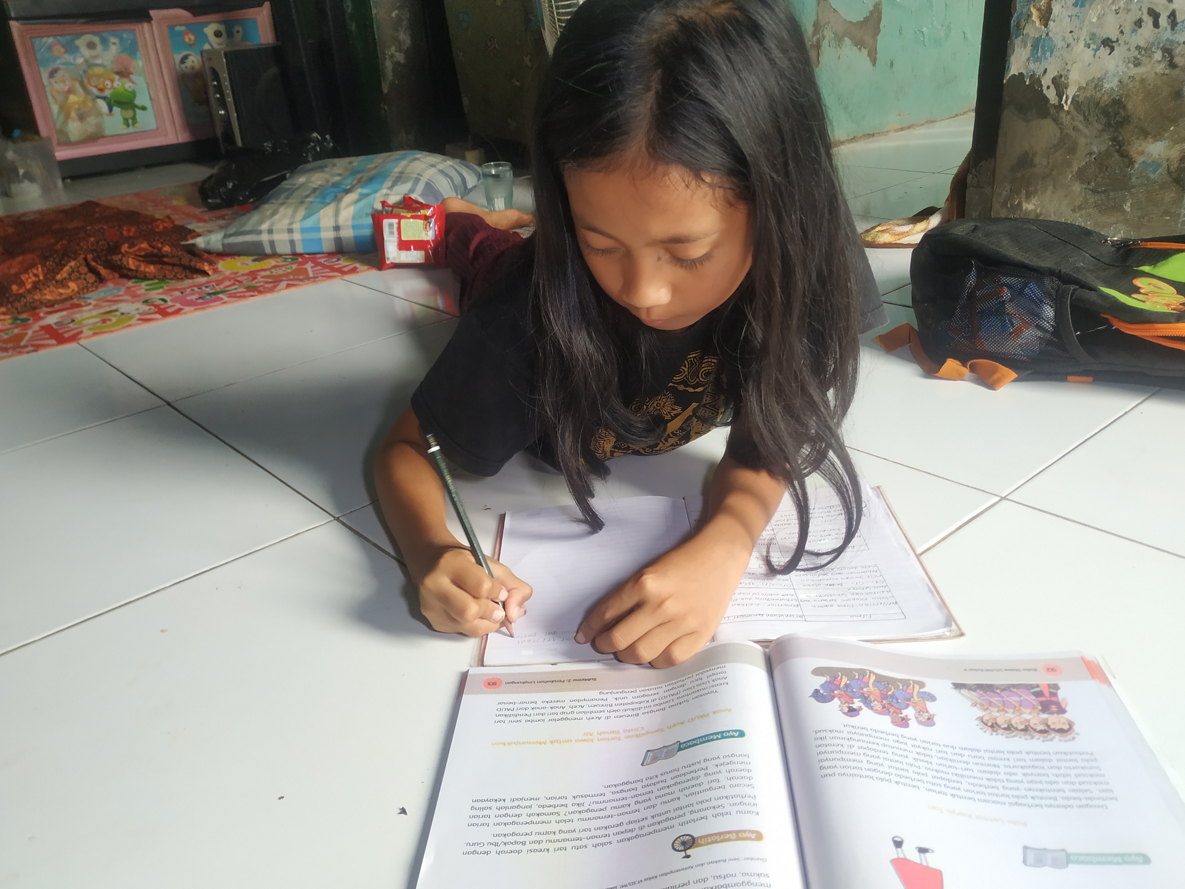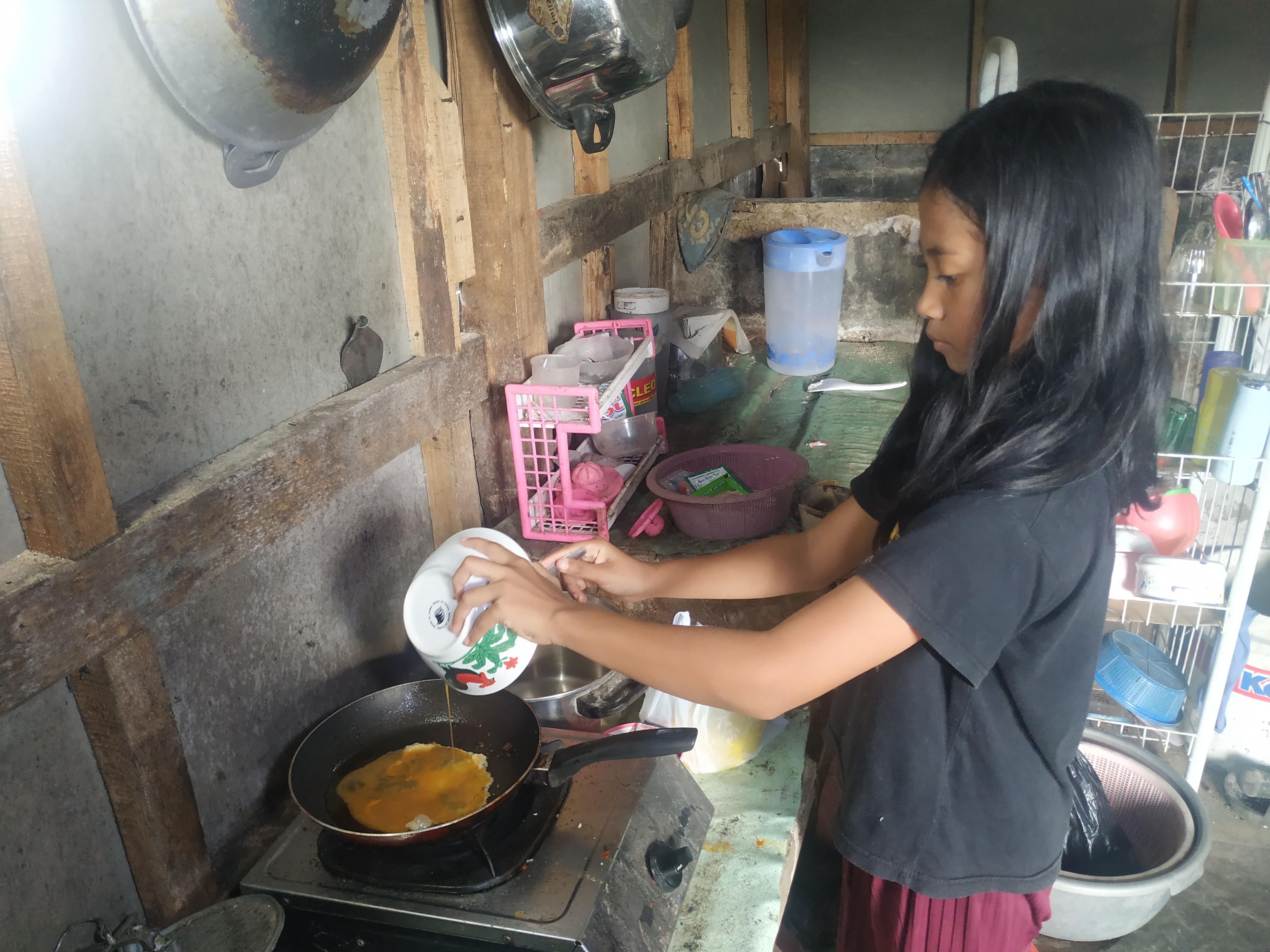 "Kalau buat bekel sekolah suka dikasih sama tetangga, ada dua ribu ada tiga ribu. Makan juga suka ada yang ngasih. Septi bisanya paling goreng telur, goreng tahu sama bikin mi instan" terang septi penuh kepolosan.