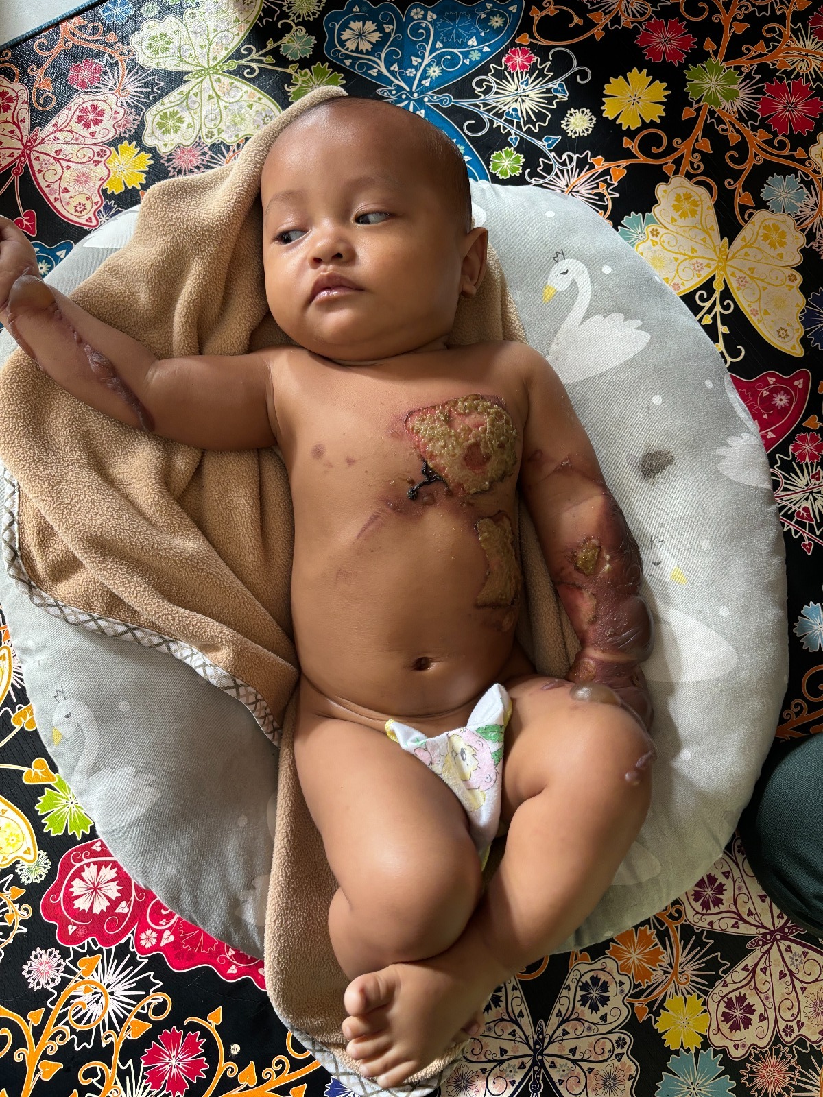 Innalillahi..di saat bayi mungil Arfan (8 Bulan) tengah asyik bermain di dekat ibunya, hal tidak terduga terjadi. Termos yang berisi air panas tumpah dan mengenai tubuh Arfan,dan seketika arfan menjerit karena tubuh nya tersiram air panas.