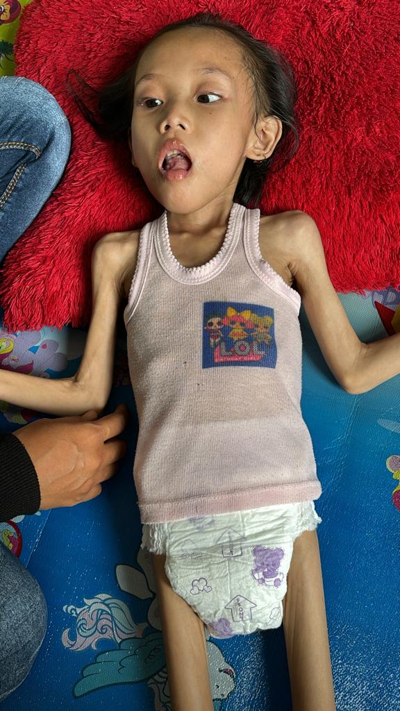 Kondisi Nadia saat ini dalam kondisi sangat lemah,sangat kurus dan setiap malam sering mengalami kejang. Untuk makan pun nadia sangat sedikit. Nadia yang saat ini membutuhkan nutrisi yang sangat baik namun karena ekonomi yang pas-pasan sehingga kebutuhan nutrisinya pun terbengkalai.