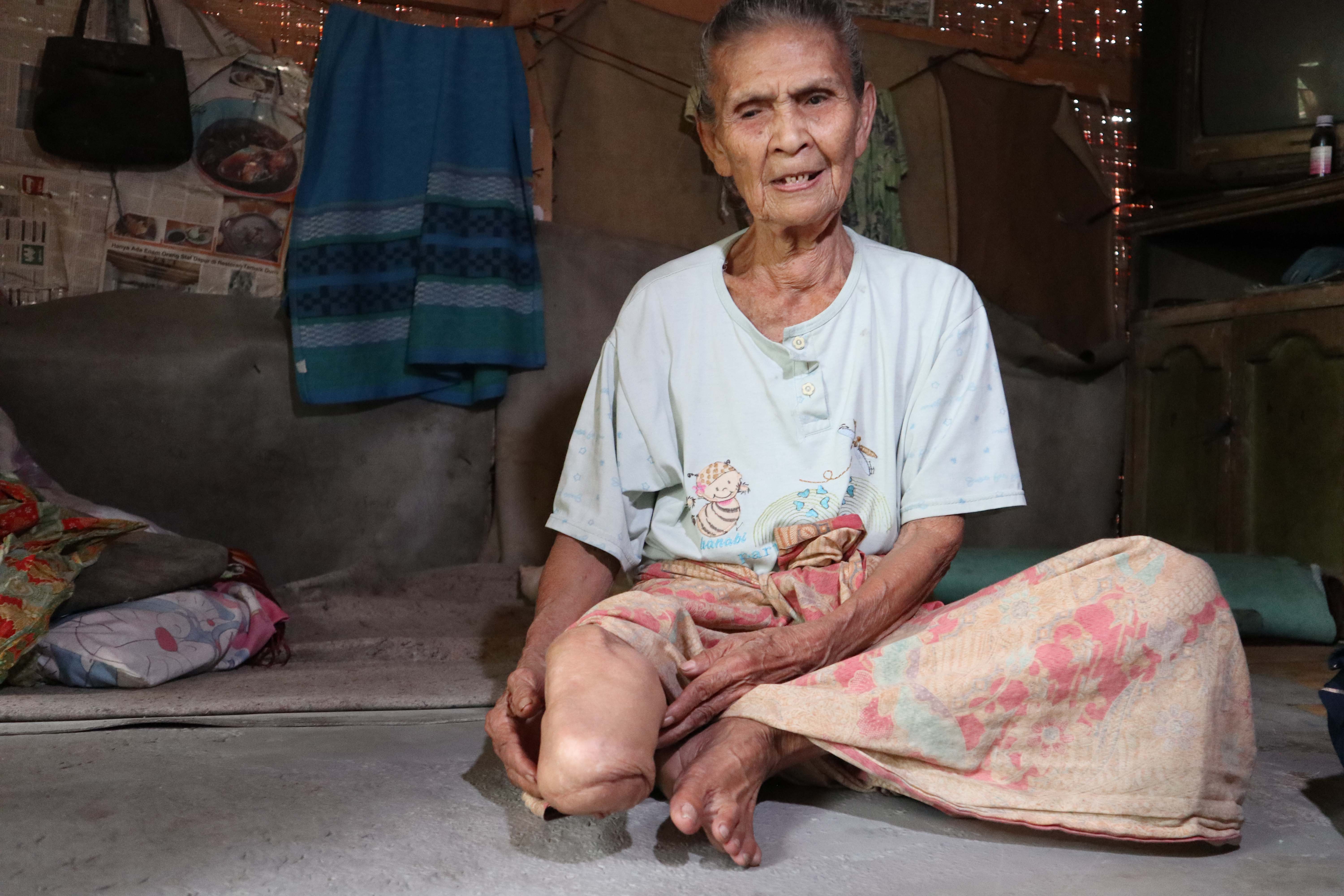 Ya, Kaki kanan dari bawah lutut nya diamputasi, sejak saat itu Mak Ening tak bekerja lagi dan hanya suami yang bekerja.