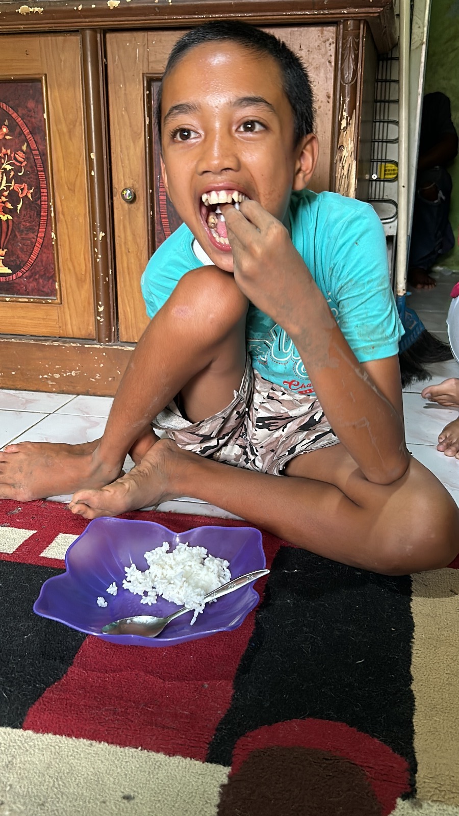 Saat kami bertemu fadil, dagangannya belum banyak yang laku. Sehingga hanya air putih dan sepotong roti untuk mengganjal rasa laparnya. Dan terkadang uang yang didapatkan fadil dicuri orang,tapi fadil tidak pernah menyesali,ia tetap berjuang berkeliling menjajakan dagangan nya.