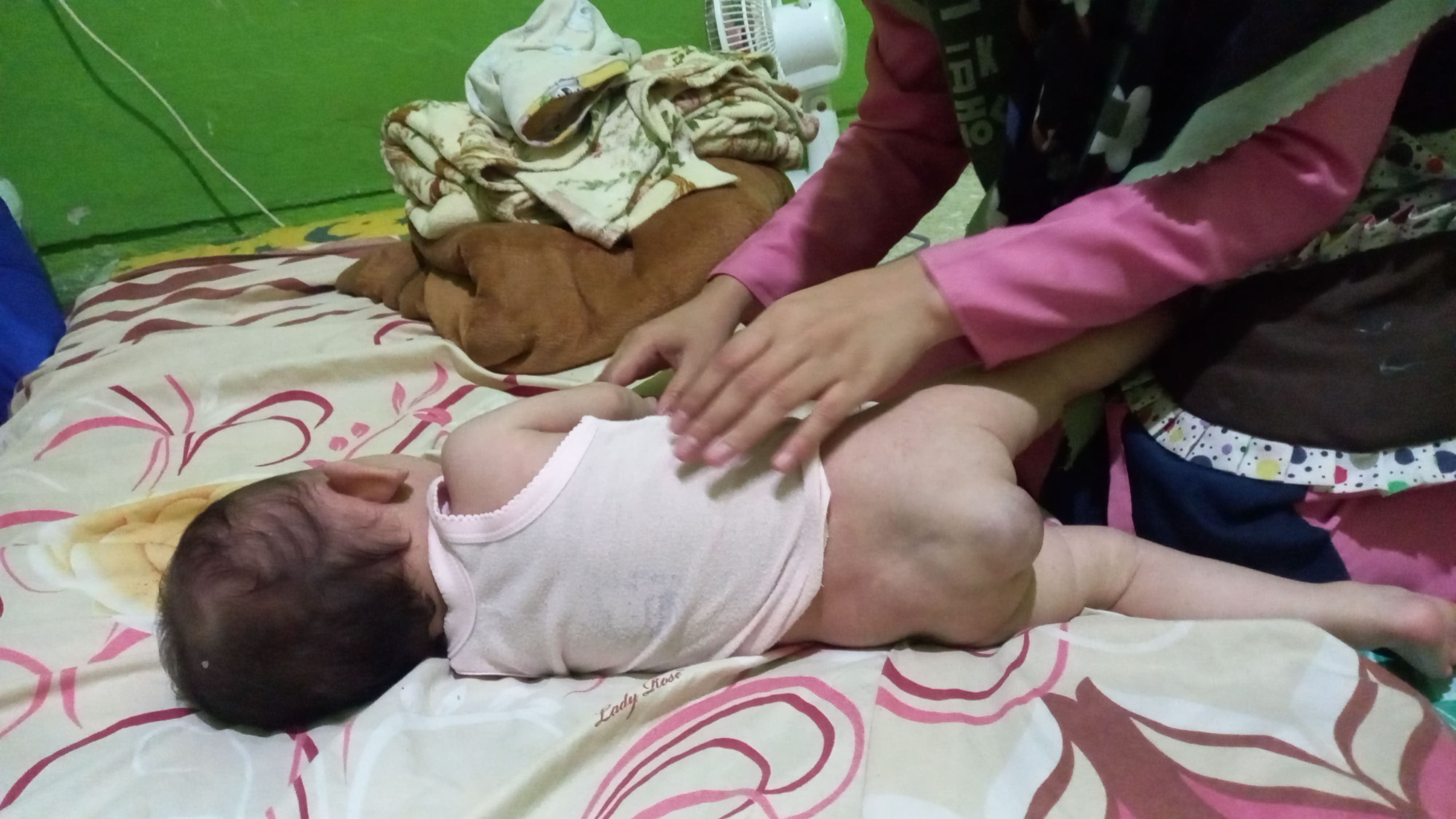 Anakku yang hampir genap satu tahun ini tidak pernah bisa bergerak dan bermain dengan nyaman karena benjolannya semakin besar dan terus mengeluarkan darah dan nanah. Untuk tidur saja anakku selalu mengalami kesulitan karena jika benjolannya tertekan sedikit saja, anakku akan menangis karena kesakitan.