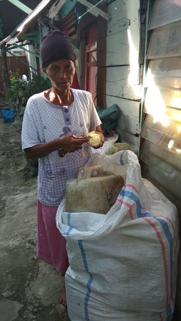 “Setiap hari dapat uang 25.000 Alhamdulillah, saya berharap ada pekerjaan lain pak. Kerja memulung ini tidak menutupi biaya hidup saya”