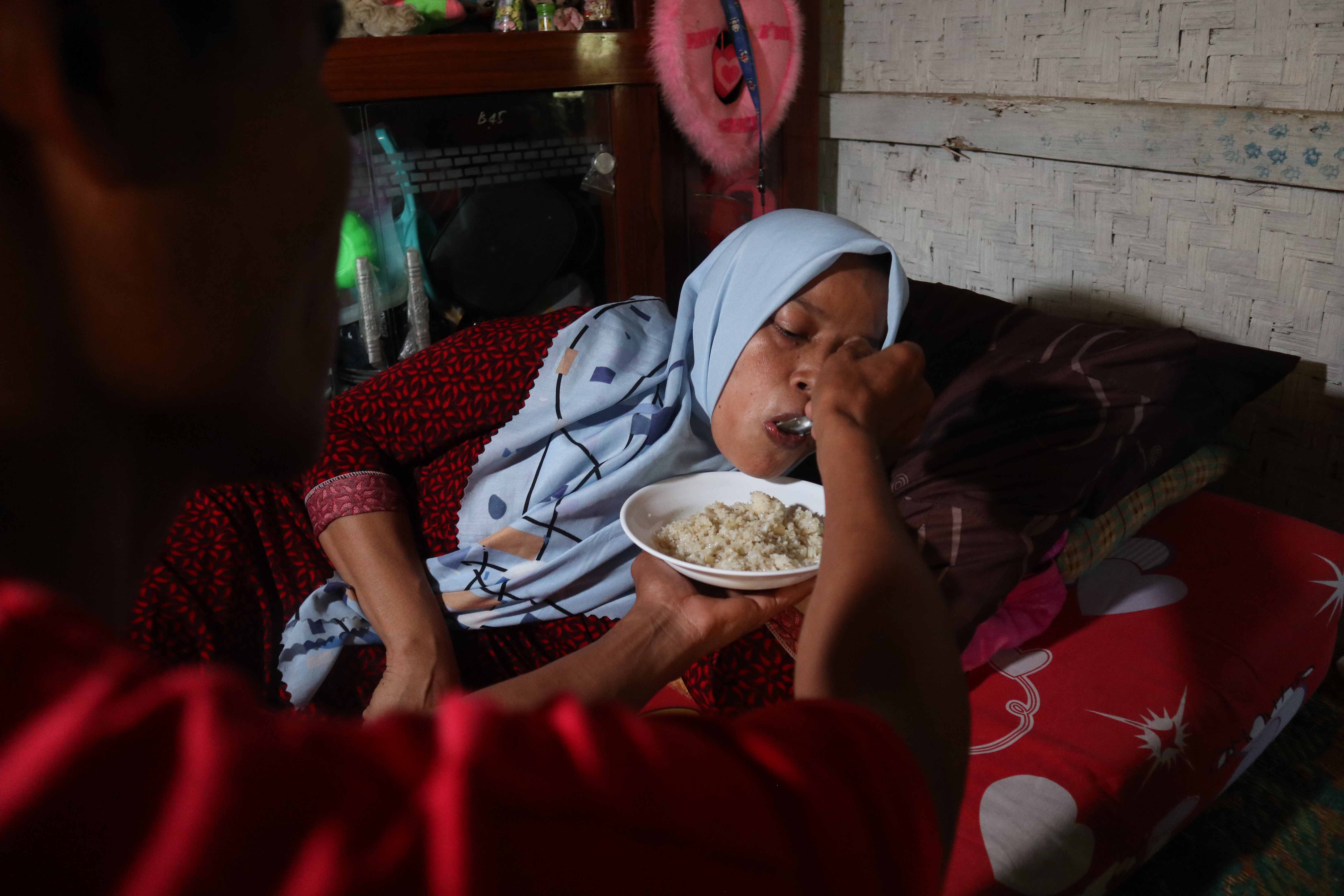 Bahkan untuk berjalan pun Bu Odah kesulitan dan terkadang Bu Odah sampai tidak sadarkan diri, untuk mengurangi rasa sakit yang Bu Odah derita Ia hanya mengandalkan obat penahan sakit dari dokter.