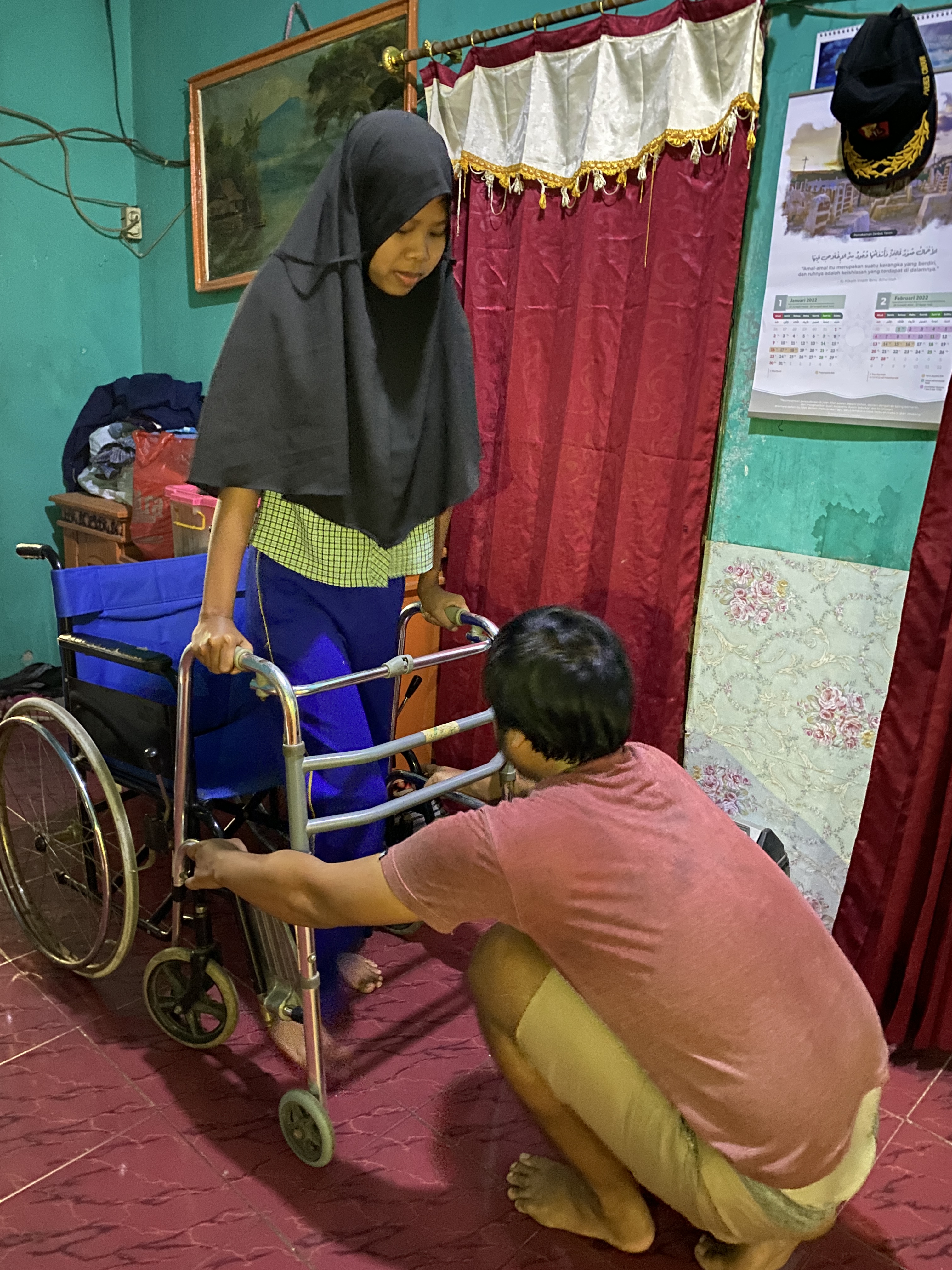 “Saya mah inisiatif aja bikin papan, soalnya kalo ke Rumah Sakit juga saya engga punya ongkos buat naik Grab-nya. Alhamdulillah Imas juga mau pake papan ini. Saya berangkat ke Rumah Sakit mah kalau ada uang buat ongkosnya, mau bagaimana lagi,” ucap kakak Imas.