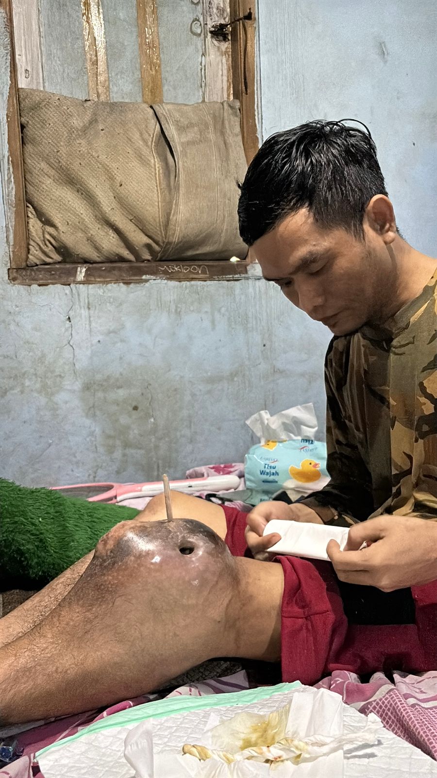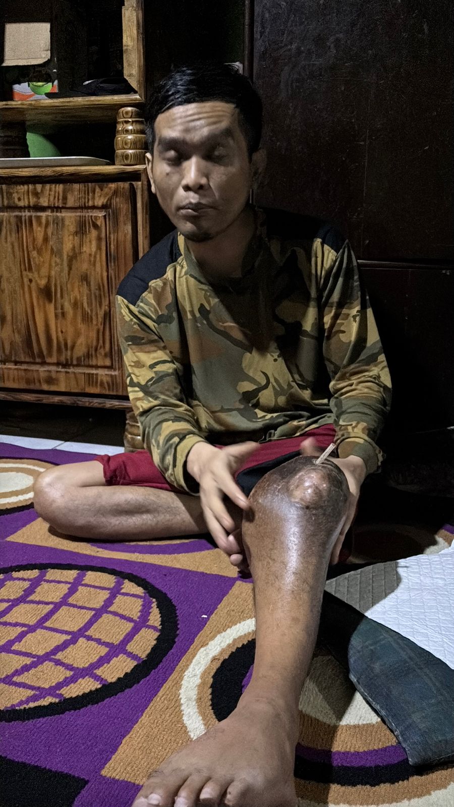 pengobatan kang epul masih sangat panjang,benjolan itu terus membengkak sebesar bola voli,yang menyebabkan kang epul kesulitan untuk berjalan.