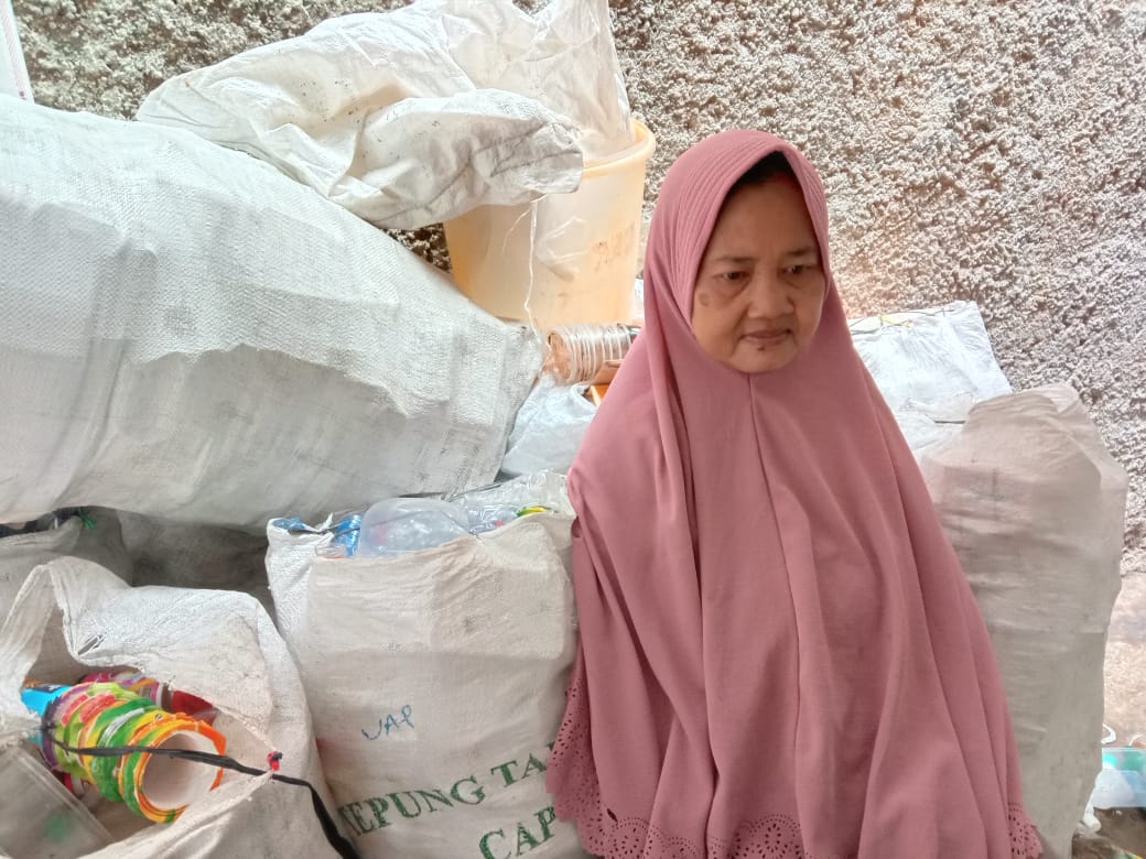 "Setiap hari saya cari botol-botol bekas kayak gini, lewatin jalan-jalan. Tempat sampah itu udah jadi tempat istimewa buat saya, yang penting saya dan keluarga bisa makan." - Mak Cucum (52)