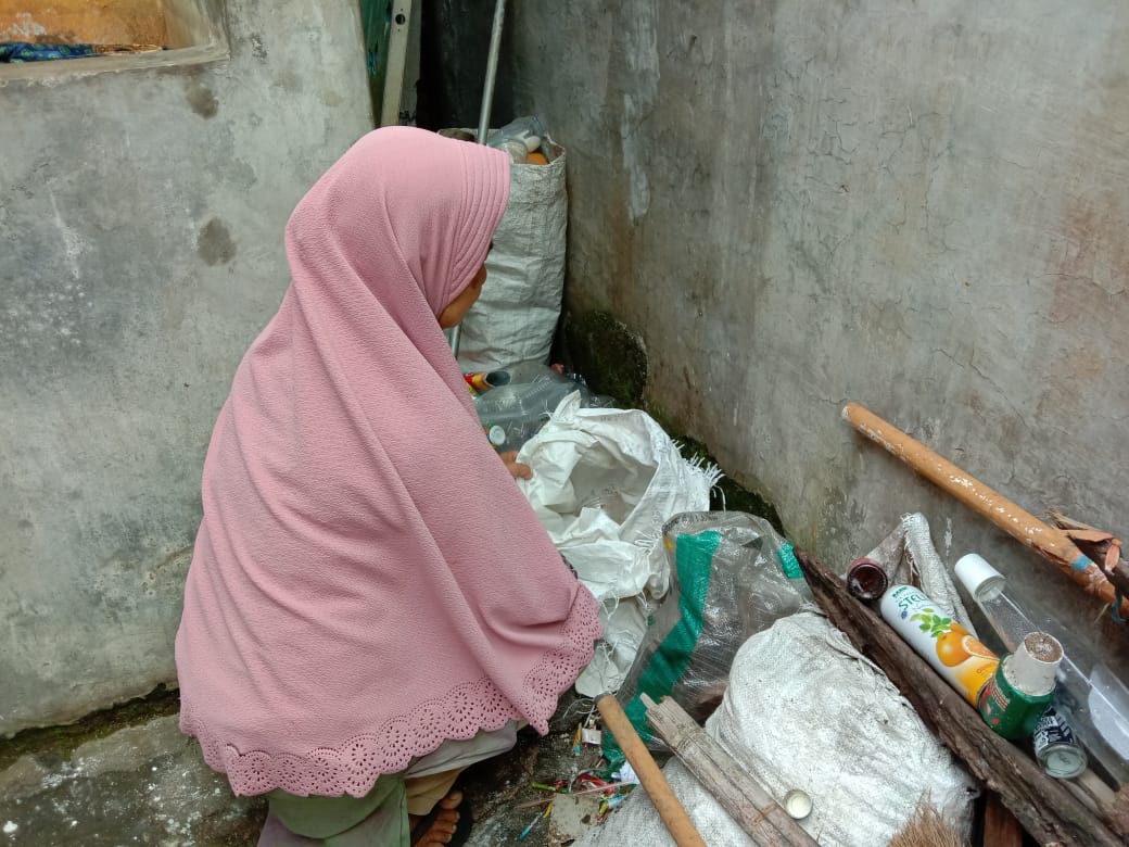 Sambil membereskan botol-botol bekas hasil mulungnya dijalanan, Mak Cucum menceritakan kisah keluarganya.