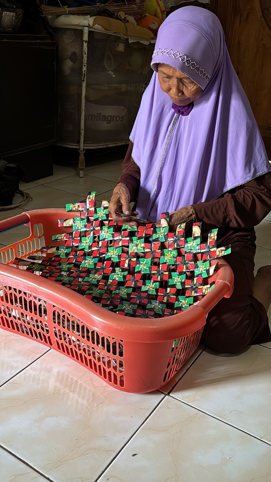 Dengan penyakitnya ini,emak mati-matian masih menekuni kerajinan yang ia buat dan ia akan jajakan ke tetangga dan dari rumah ke rumah.