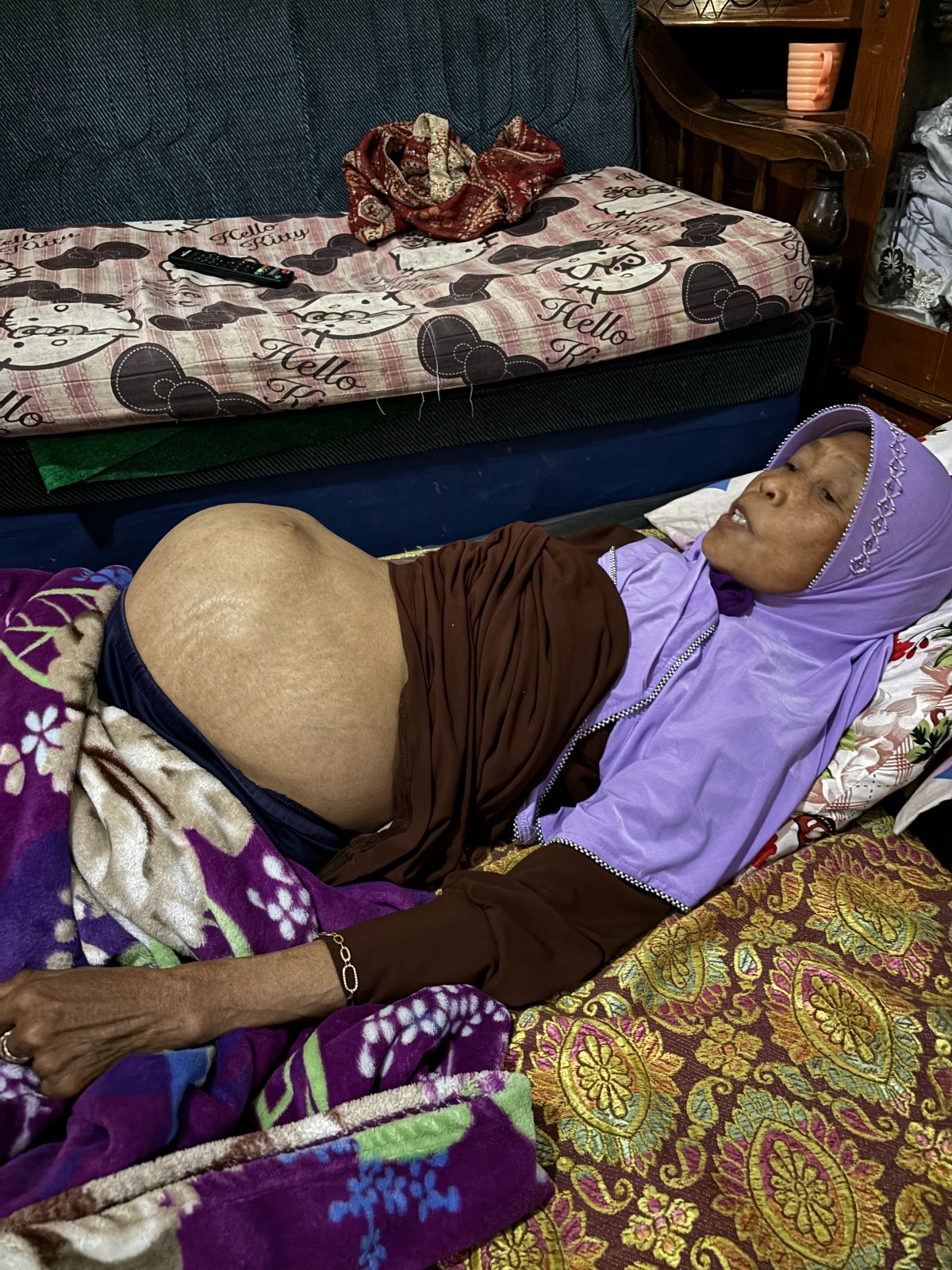 Mak een sudah menjalani beberapankali operasi hingga pengangkatan rahim,tapi nahas tumor kini bersarang di perut mak een dan kian membesar..