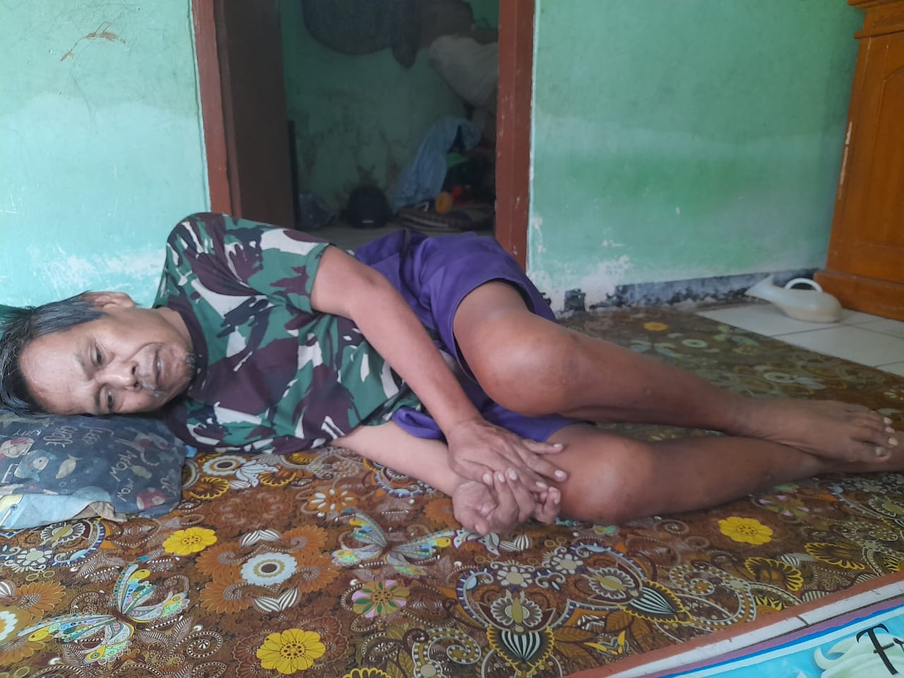 Sementara sang anak tercinta Kodir (58 tahun) pun mengalami nasib yang serupa. Berawal dari 5 tahun lalu saat kodir jatuh di kamar mandi, tubuhnya kaku tak bisa digerakan sama sekali. Hanya bisa duduk yang kini kodir bisa lakukan dalam setiap harinya.