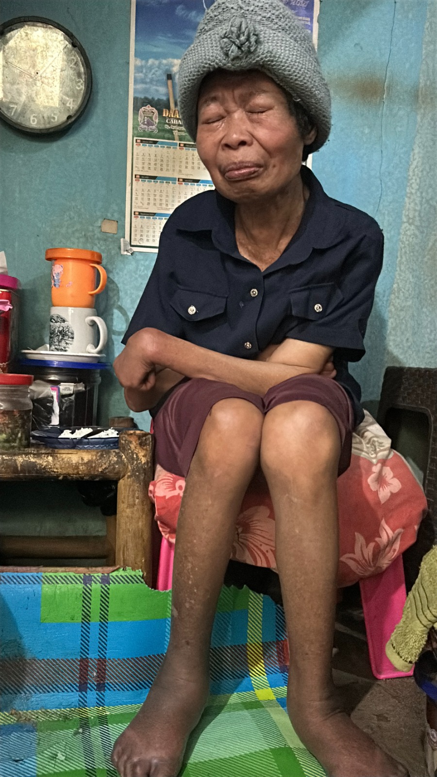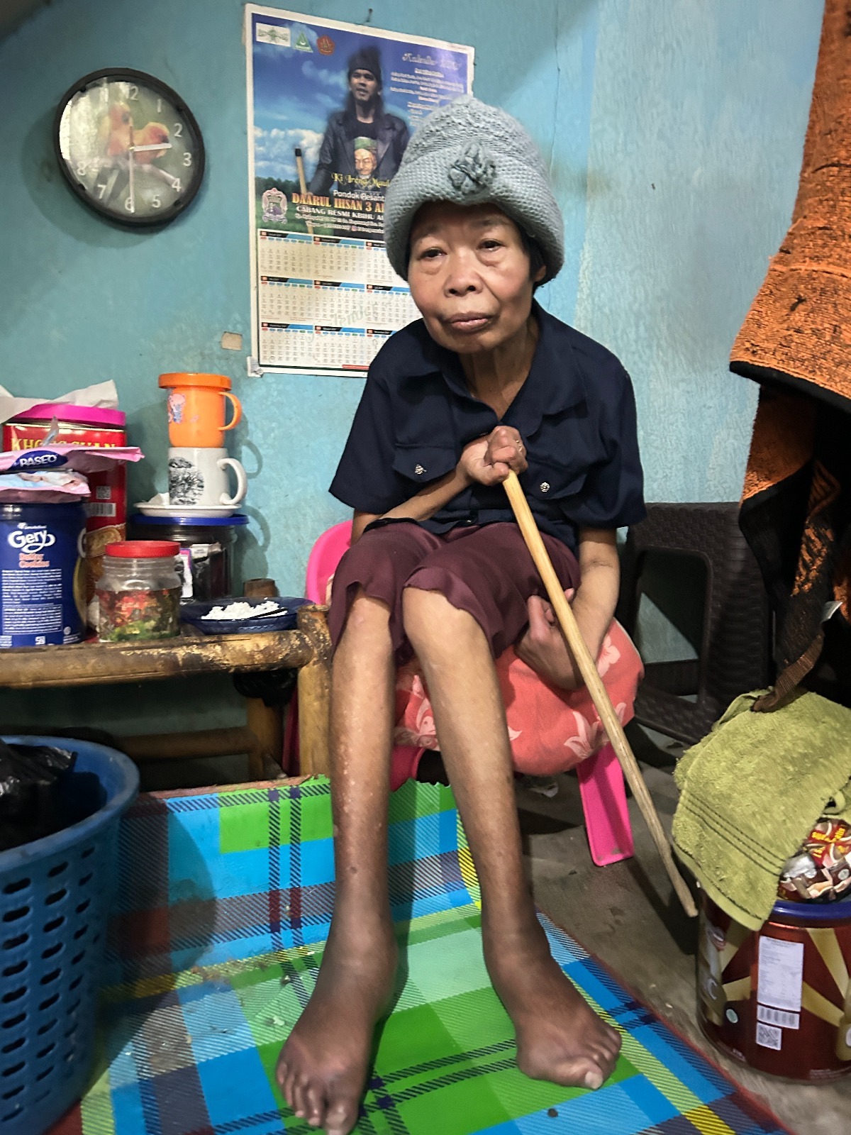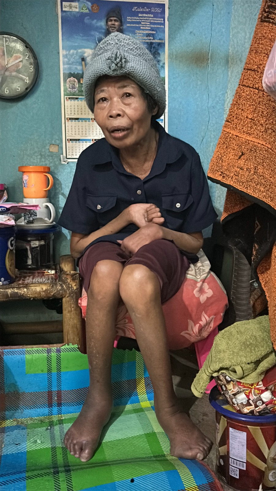 Disalah satu gang sempit,emak hidup seorang diri dengan kondisi yang serba terbatas,tangan bengkok dan kaki tidak bisa digerakkan dengan normal membuat emak hidup dalam keprihatinan..