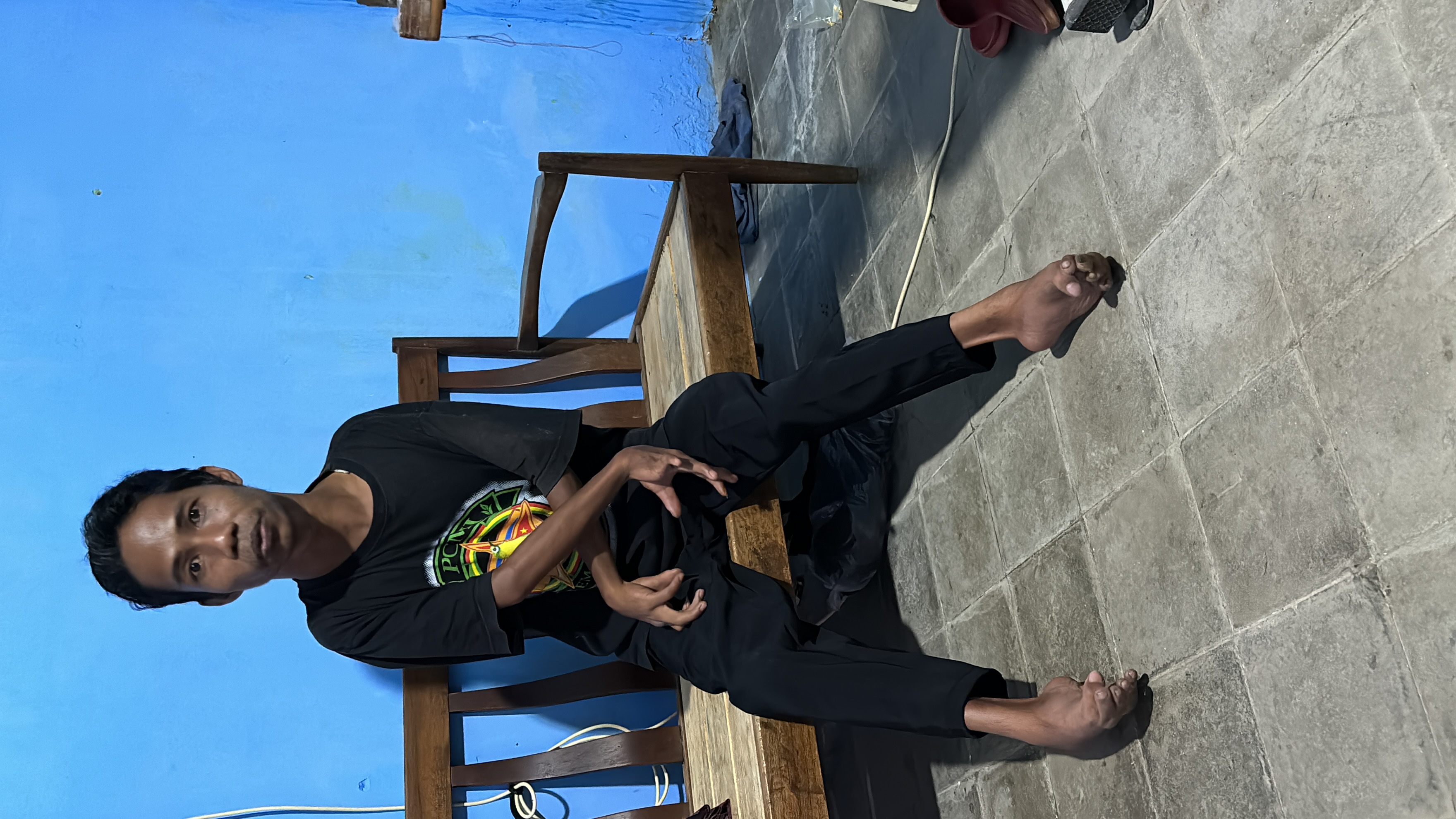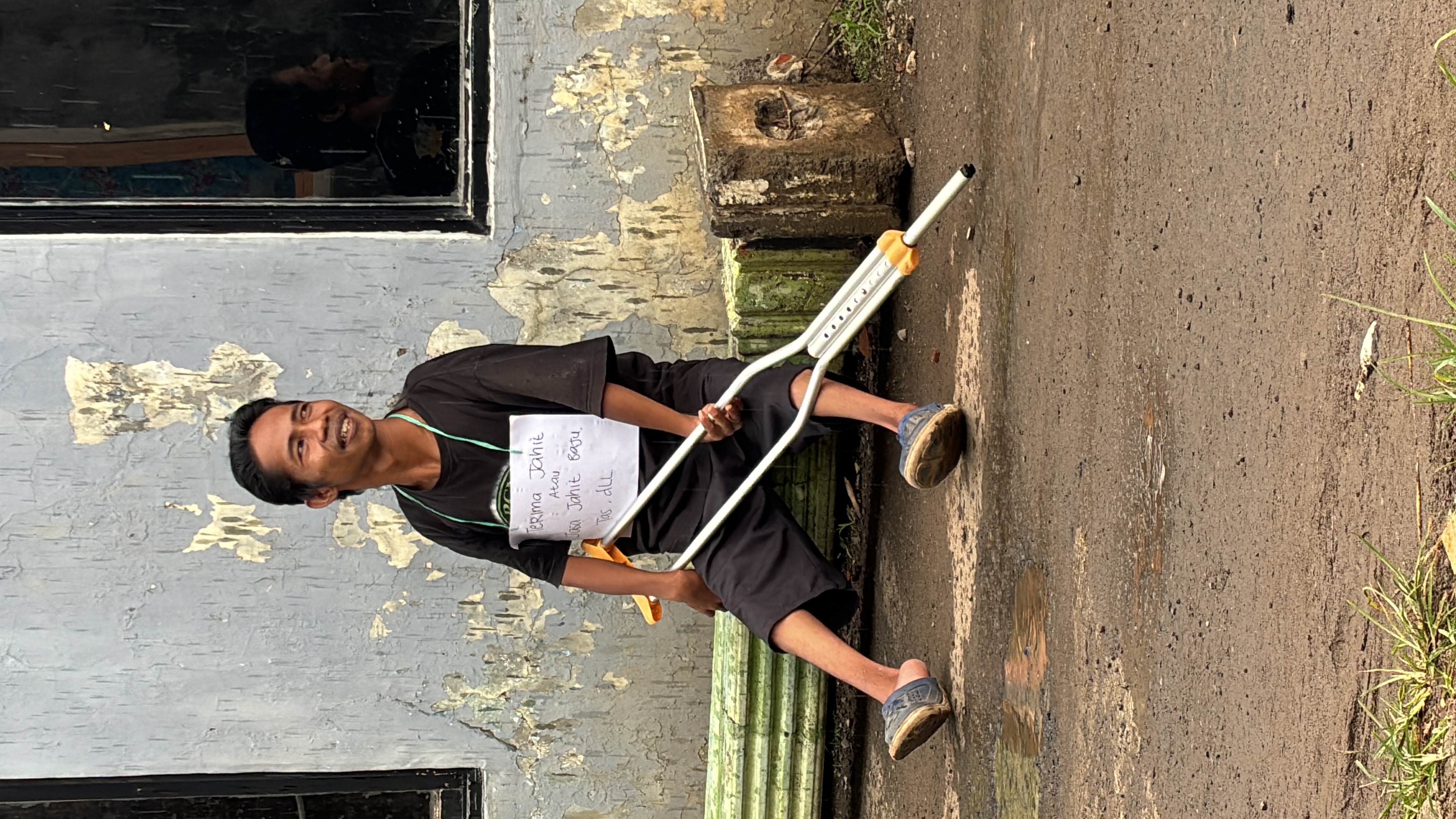 Sedihnya, ia harus mengesot atau memakai tongkat untuk sekedar berjalan. Tak banyak yang ia dapat hanya 30-50 ribu sebagai upah jahit.